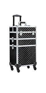 - Latches with Locks: 7 suitcase latches combined with lockable locks together with 2 keys are provided for extra safety. With this rolling makeup case, you can trustingly travel with all your required costly cosmetics and instruments without worrying about losing or damaging them