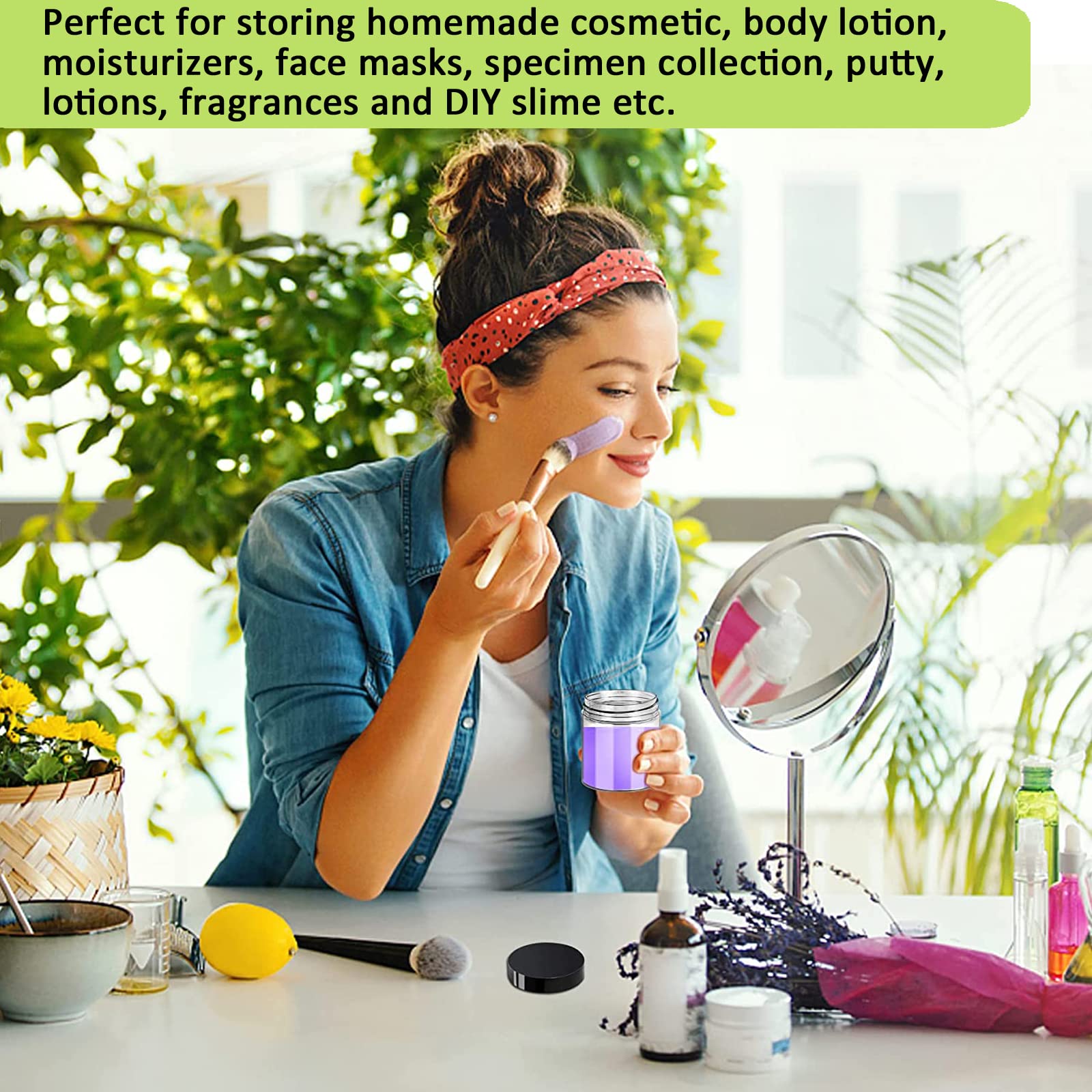 - ✅ Useful Container & Wide Application - These empty plastic travel jars can be used for storing Beauty Product, Sample, Cosmetic, Face Cream, Lotion, Powder, Makeup Liquid, Body Butter, Craft, Spice, Shower Wedding Favors, Ingredients, Party Favors, DIY Decor and Food etc. Our round plastic jars with lids are great for sharing your DIY lotions, bath salts, or gels with your friends or family!