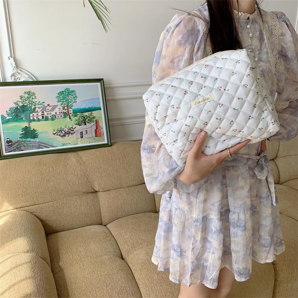 Aucuu Cotton Makeup Bag, Portable Travel Cosmetic Bag, Large Capacity Floral Toiletry Bags, Quilted Wash Bags Organizer for Women Girls
