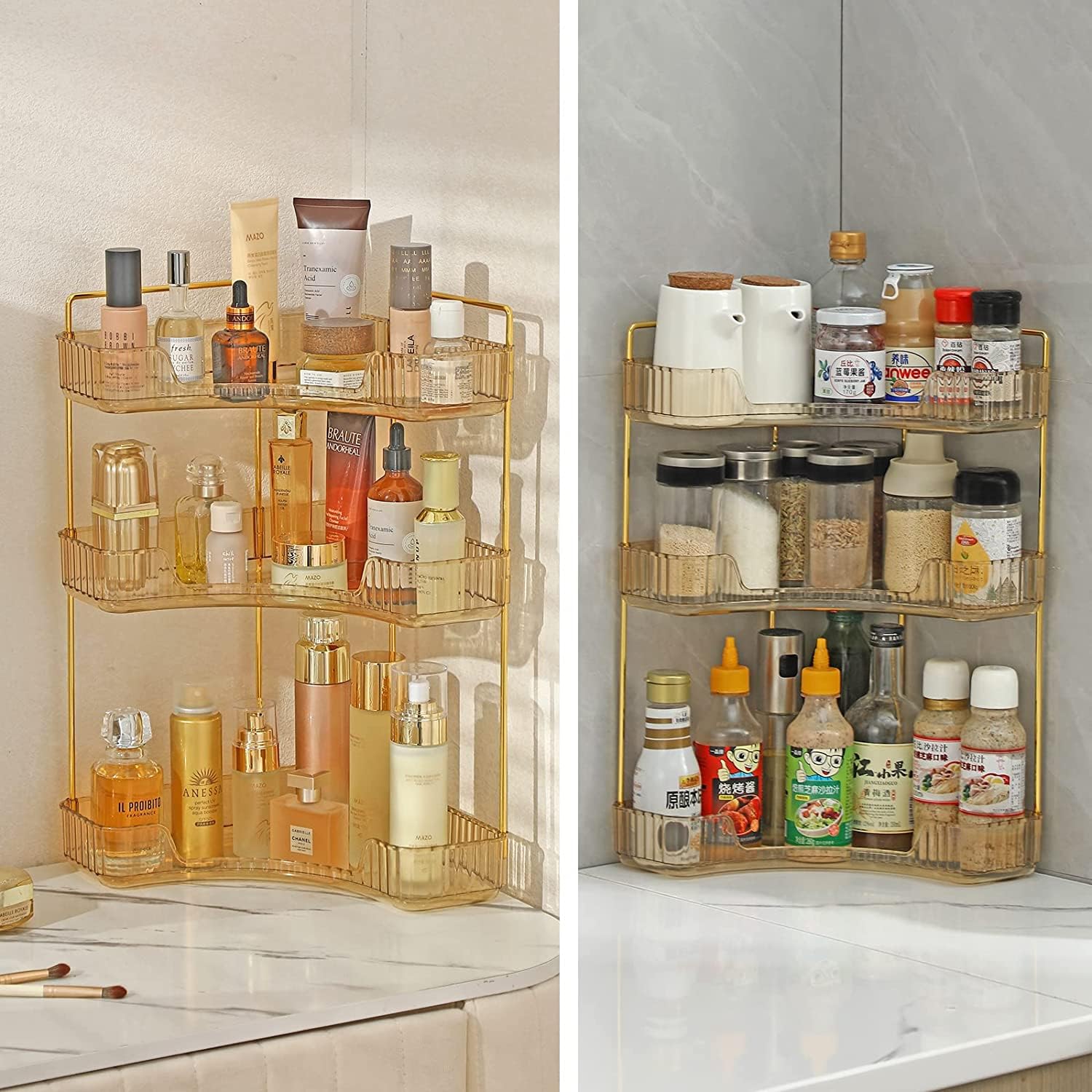 Bingobang Makeup Organiser Corner Trays, 3 Tiers Skincare Cosmetic Organizer Acrylic Large, Storage Tidy for Lipstick, Nail Care, Perfume, Brush, Vanity Dresser, Bedroom, Kitchen, Bathroom(Grey)