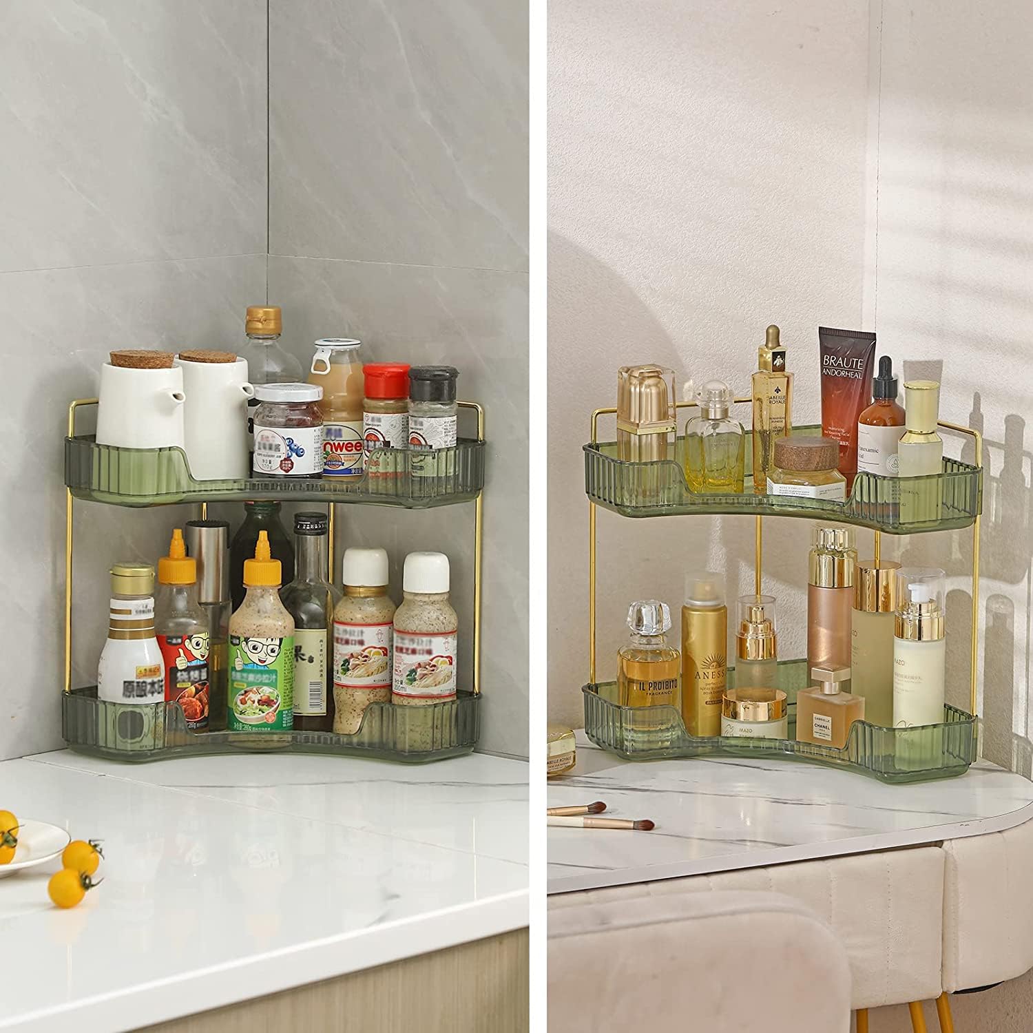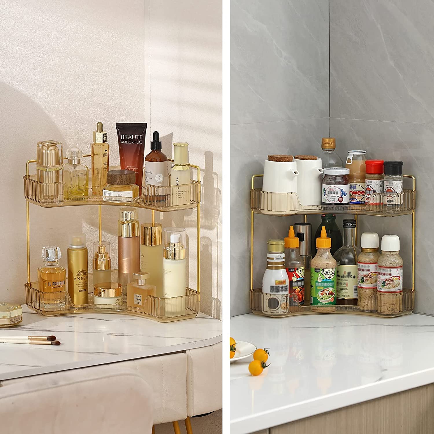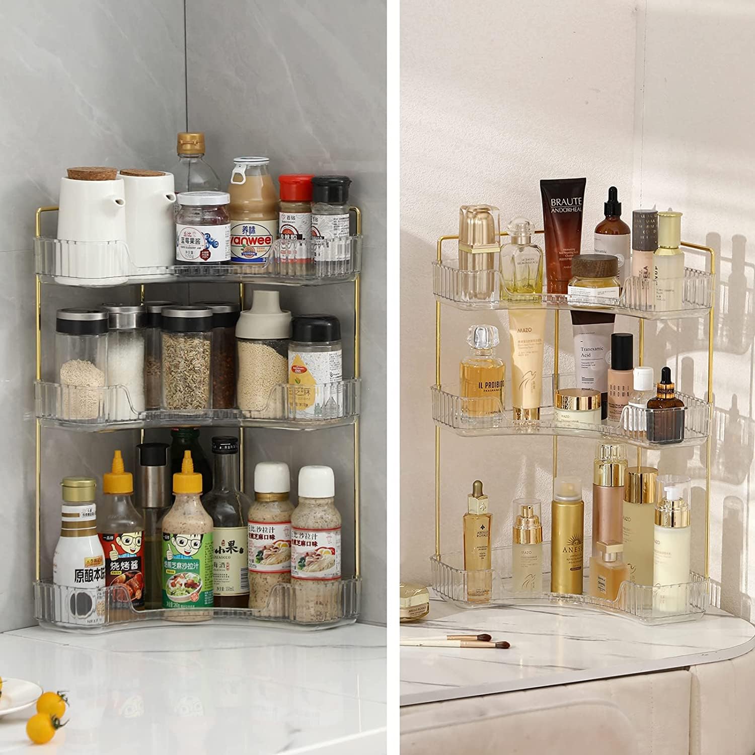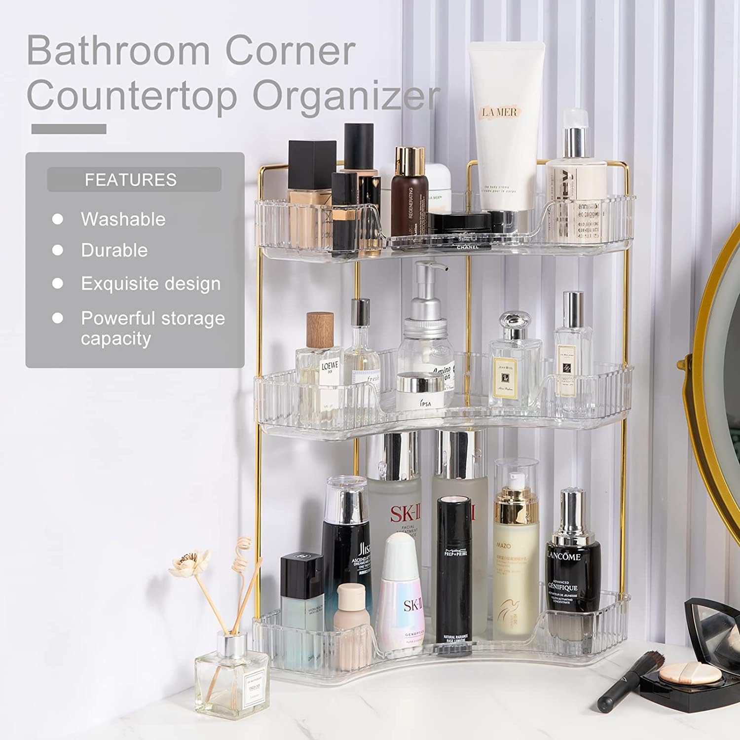 - SAVING YOUR CORNER SPACES: The skincare organiser is cleverly designed with 90-degree size, which can maximize use in your corner unused space. It is easy access to get your make up items what you want and the bottom can be firmly attached to the desk. No tools required for installation, just take a few minutes and be finished
