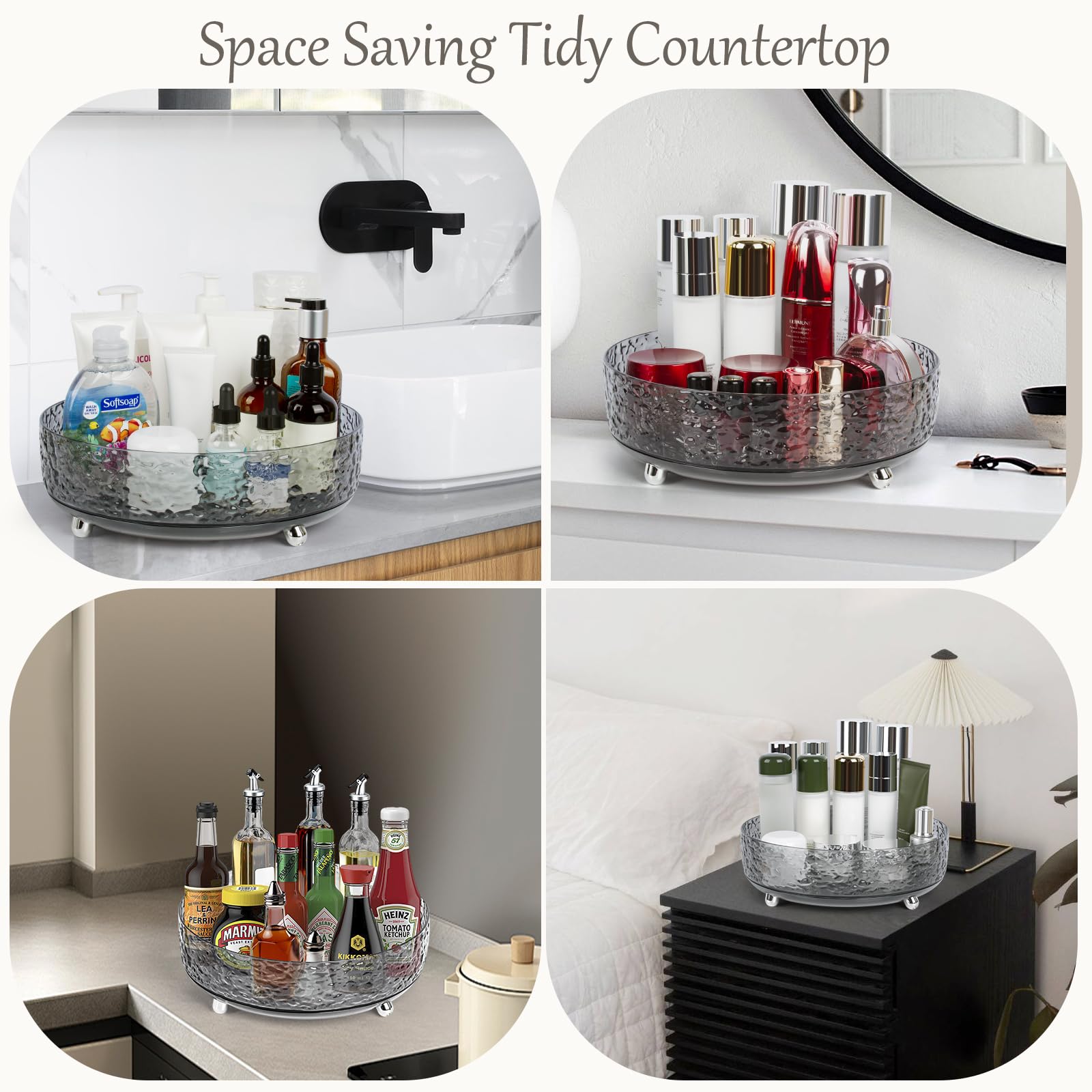 - [Versatile Uses] Not just for cosmetics - this lazy susan organizer also fits for storing many different items, like jewelry, stationery, spice, hand sanitizer, facial cleanser, small accessories, or even everyday items like keys and coins. Keep your bedroom, bathroom, office, closet, dressing table, or countertop well organized.