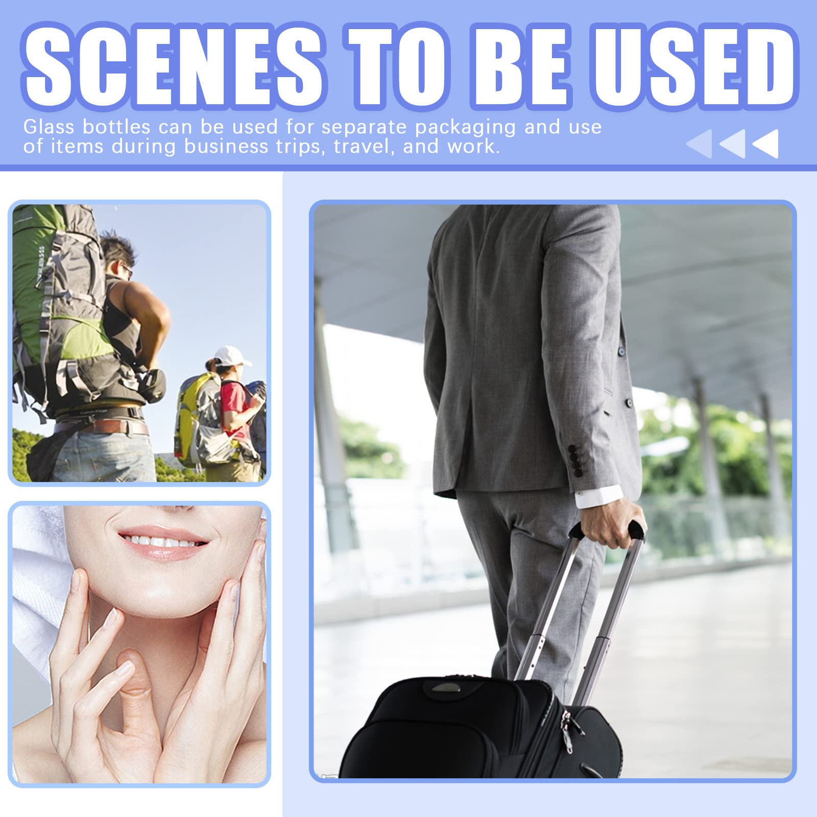 • ♛【Perfect Design】: These small glass jars with lids fit perfectly for cosmetic bag, handbag and backpack. You can carry them anywhere with confidence. Wide mouth easy to access in and out, easy operate, designed for your convenience and suitable for everyday use.