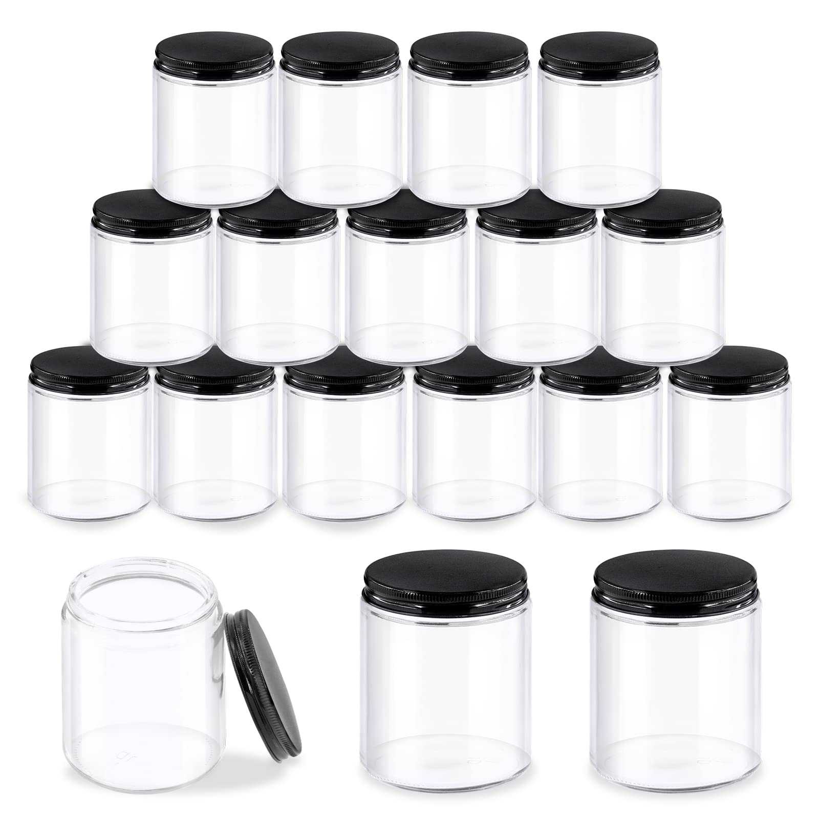 Glarks 8 Pack 8oz/240ml Glass Jars with Lids, Round Clear Glass Jars with Inner Liner and Black Lids for Storing Creams, Beauty Products, Cosmetic and Ointments