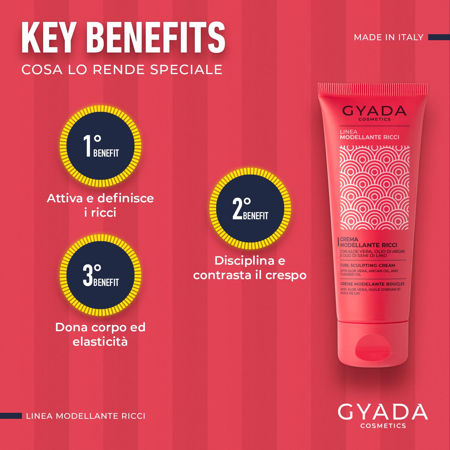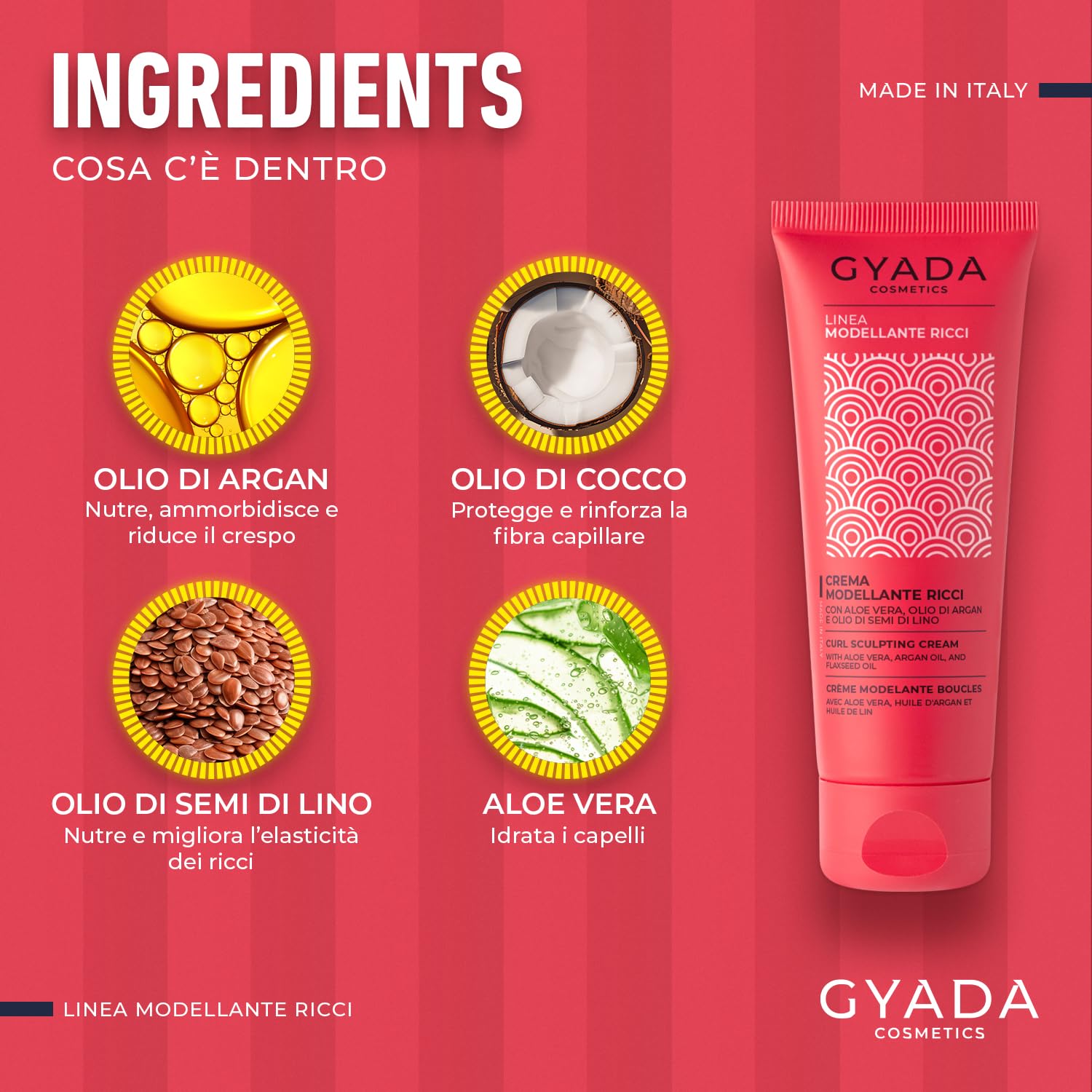 GYADA COSMETICS, 5th Anniversary Sculpting Curl Cream with Smoothing and Anti-Frizz Effect with Aloe Vera, Linseed Oil, Coconut, Argan and Jojoba 75ml