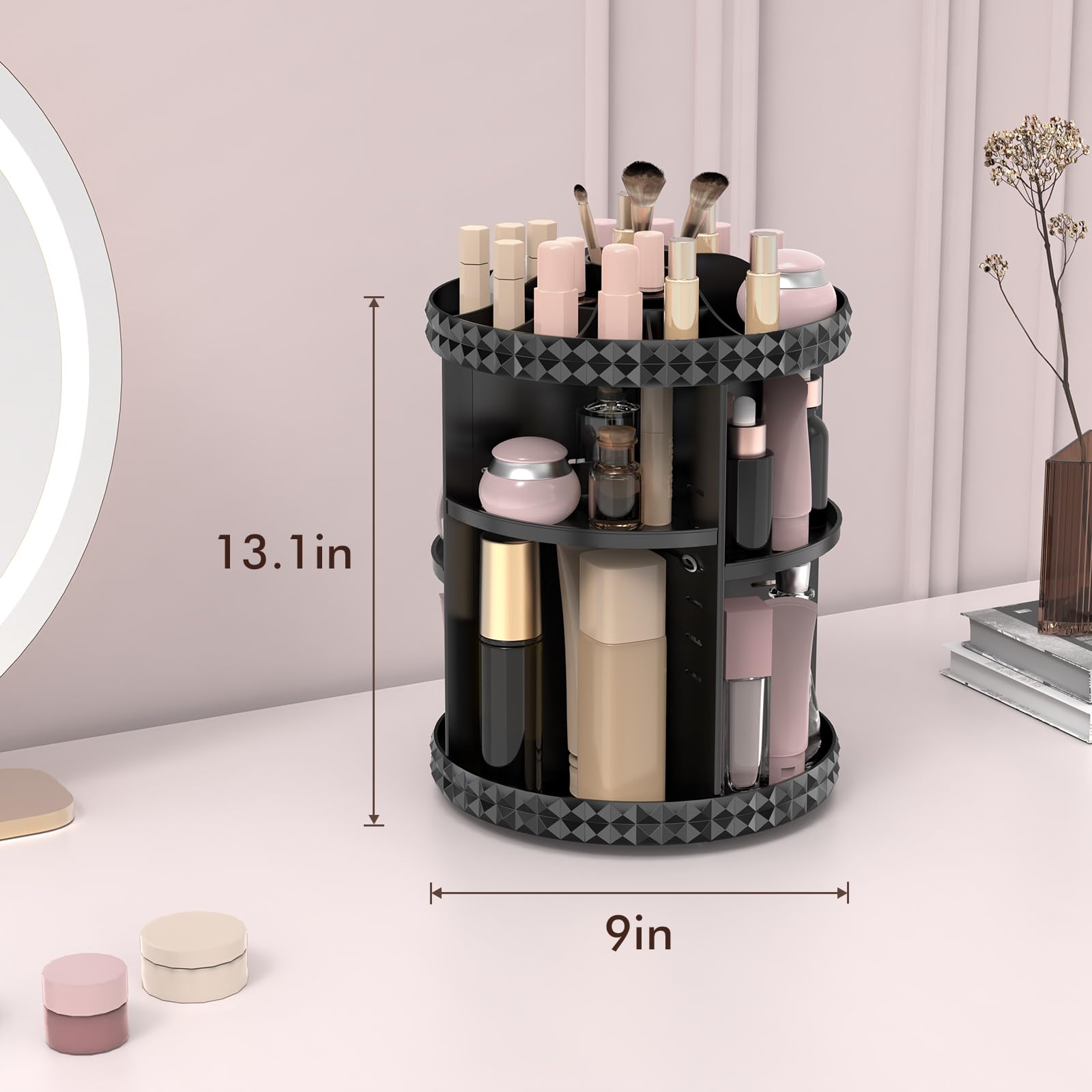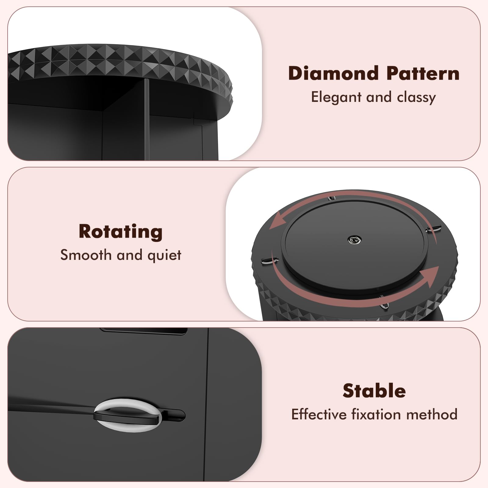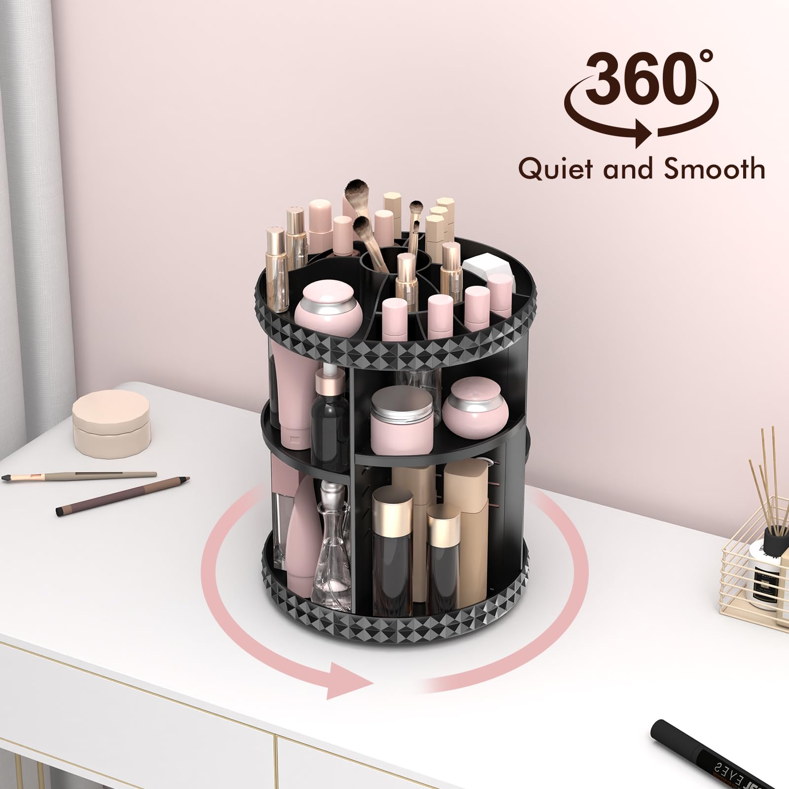 - 360° Rotating Design: With a stable base, our spinning organizer can rotate smoothly and quietly, allowing you to get all your makeup items in seconds.