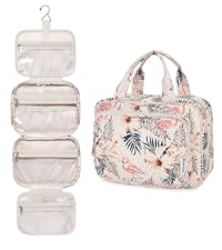 - ✅ SMART HOOK - Buit-in hook allows hanging the wash bag from towel rack, coat hook or whereever is available, making your toiletries and cosmetics displayed well for easy access and saves counter space as well.