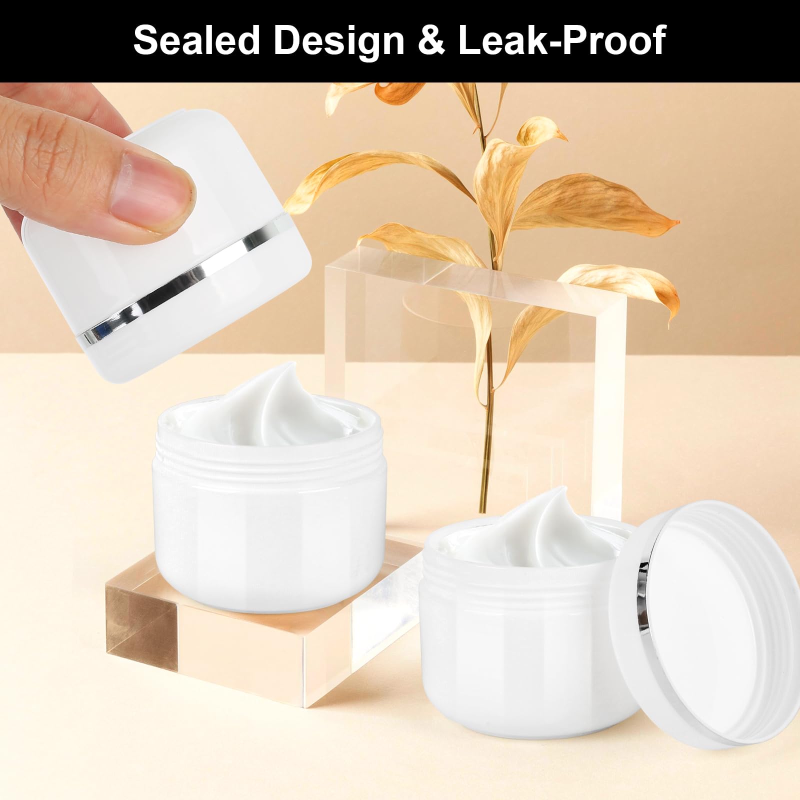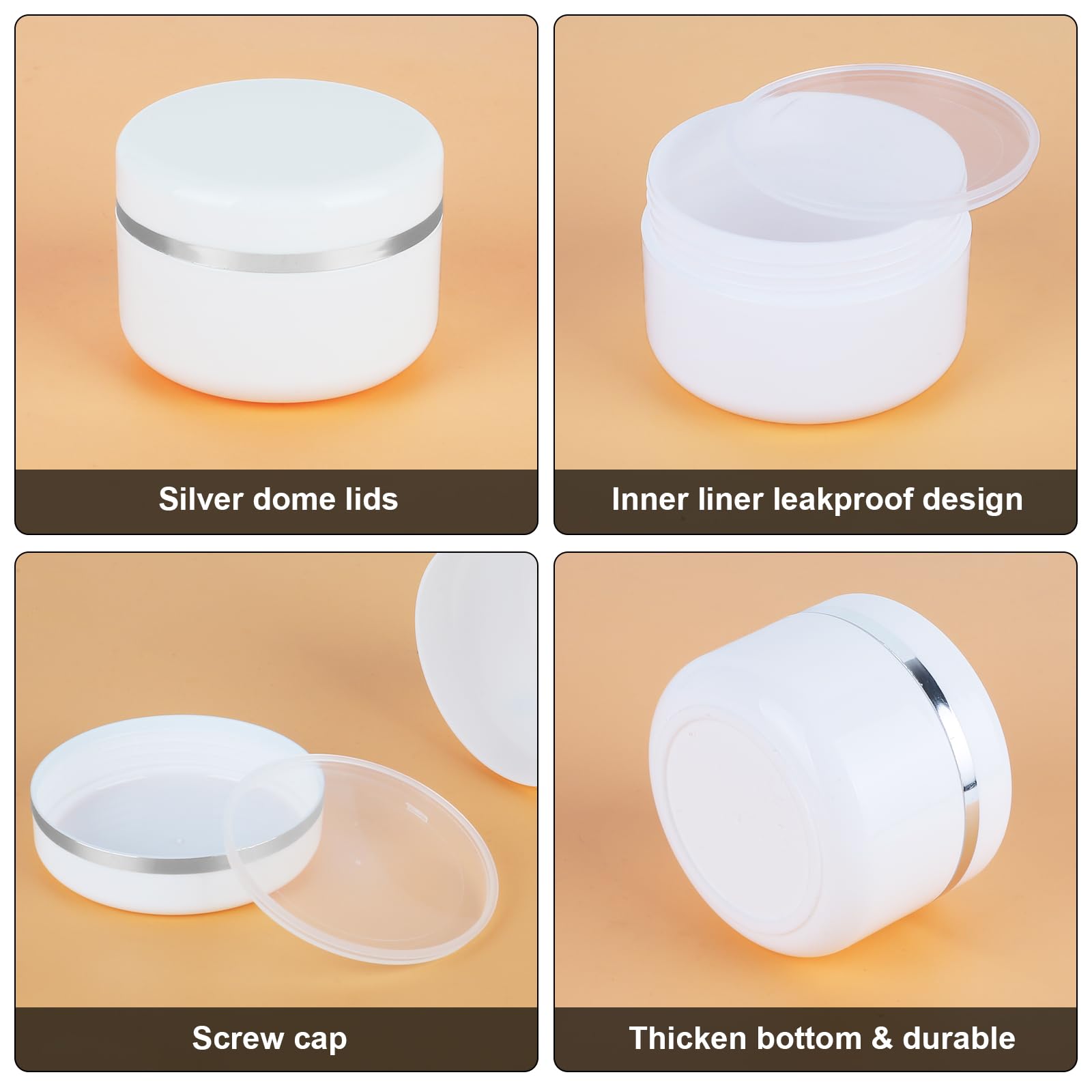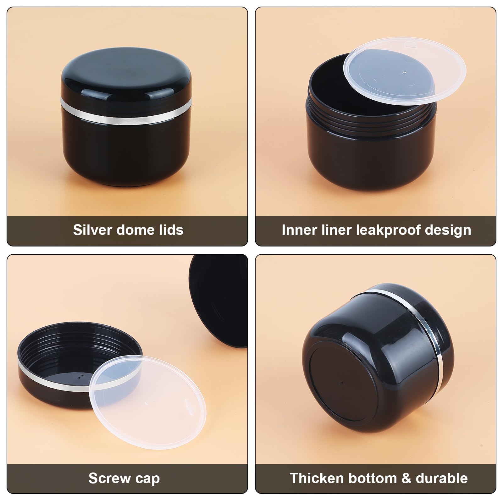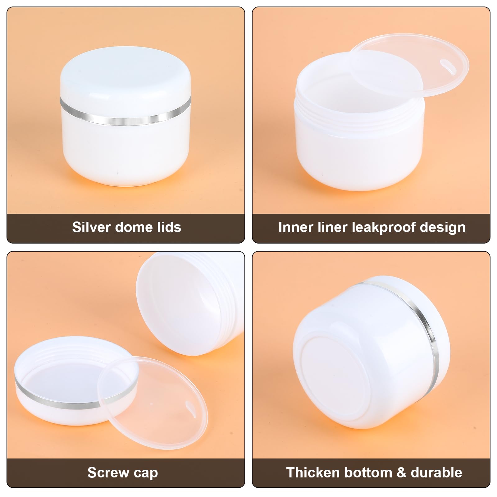 - 【Leak Proof Design】Each cosmetic sample jars has a silver dome cover and a white inner gasket, which can form a tight seal and help prevent the face cream in the can from leaking or overflowing.