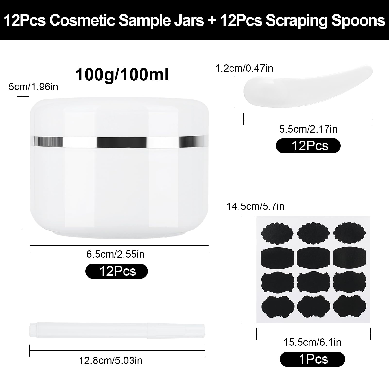 - 【Black Label Sticker】Cosmetic pots with lids is equipped with 16 pcs erasable black waterproof sticker, 1 pen, the use of label sticker can clearly know what is inside the face cream can, and 15 pcs scraper spoon is equipped to facilitate the use of lotion extraction.