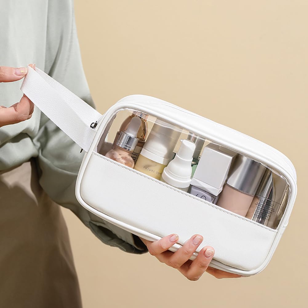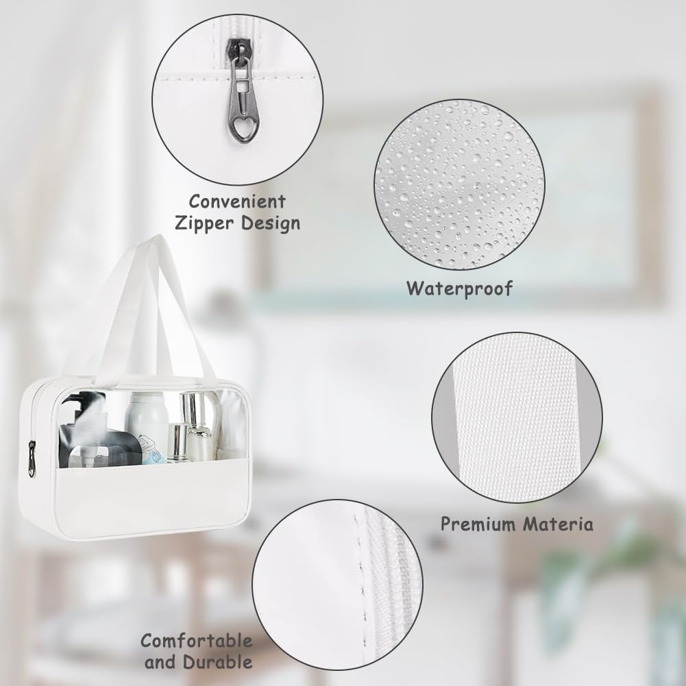 - 【Premium Quality】 The transparent cosmetic bag is made of high-quality PVC+PU material, which is waterproof and leak-proof. The metal zipper on the top is very smooth and durable. You can put wet towels, clothes, cosmetics, toiletries in the toiletry bag to prevent water leakage from ruining your other dry items.