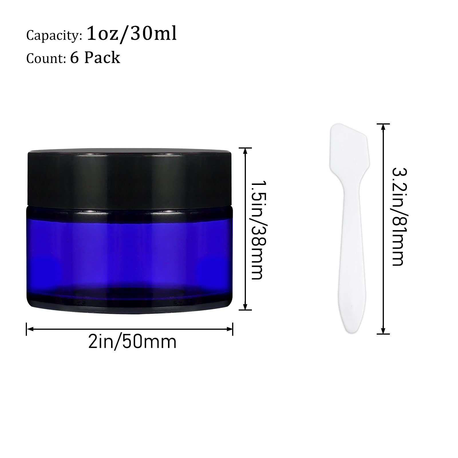 - 6 pack 4 oz amber cosmetic glass jars with screw black lids and inner liners(3 spatulas and 6 colourful labels included)