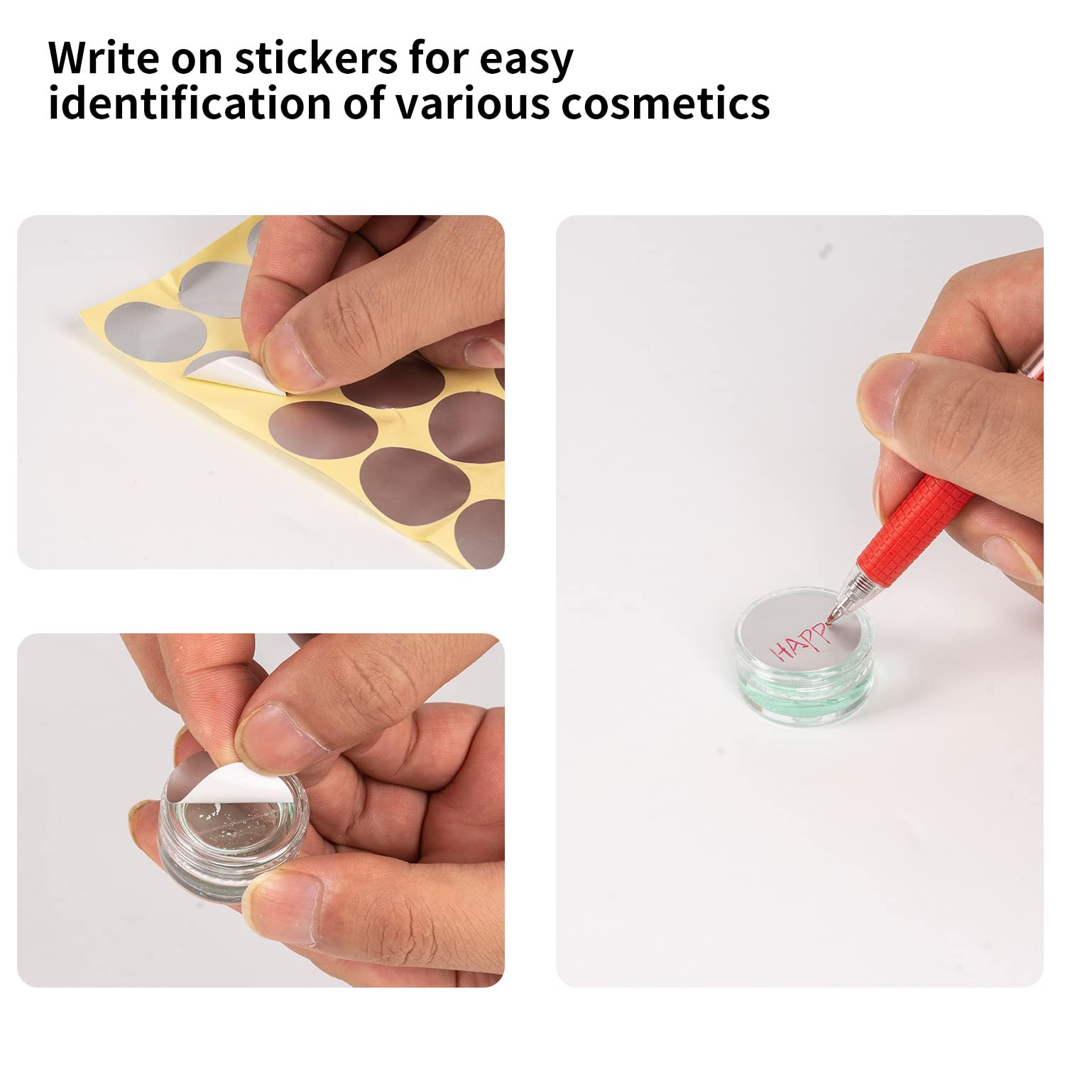 - Package includes: 70 pcs 5ml cream jars + 80 pcs 25mm/ 1 inch diameter stickers + 6 pcs spatulas + 1 pcs spray bottles