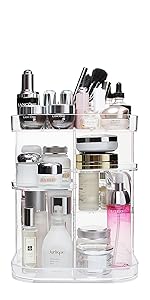 A3: These gas patterns are the normal patterns in the production process, and will not have any impact when using. This rotating makeup organizer are made by clear acrylic material. In production, the acrylic material is liquid at high temperature, and then injected into the molding mold and then pulled out. However, the temperature and flow speed are different, so the gas patterns of the transparent material will be obvious but will not have any impact when you using.