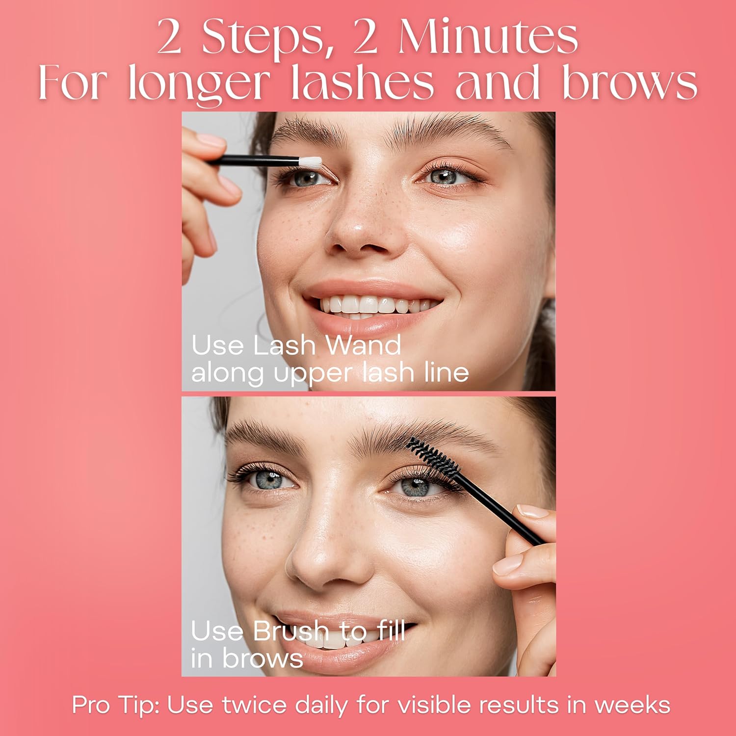 - ✅ 2-IN-1 LASH & BROW ENHANCER WITH DUAL APPLICATORS: Designed for precision and ease, the dual applicator includes a mascara-style wand for eyelashes and an angled brush for targeted brow application. One serum to simplify your routine and deliver powerful results.