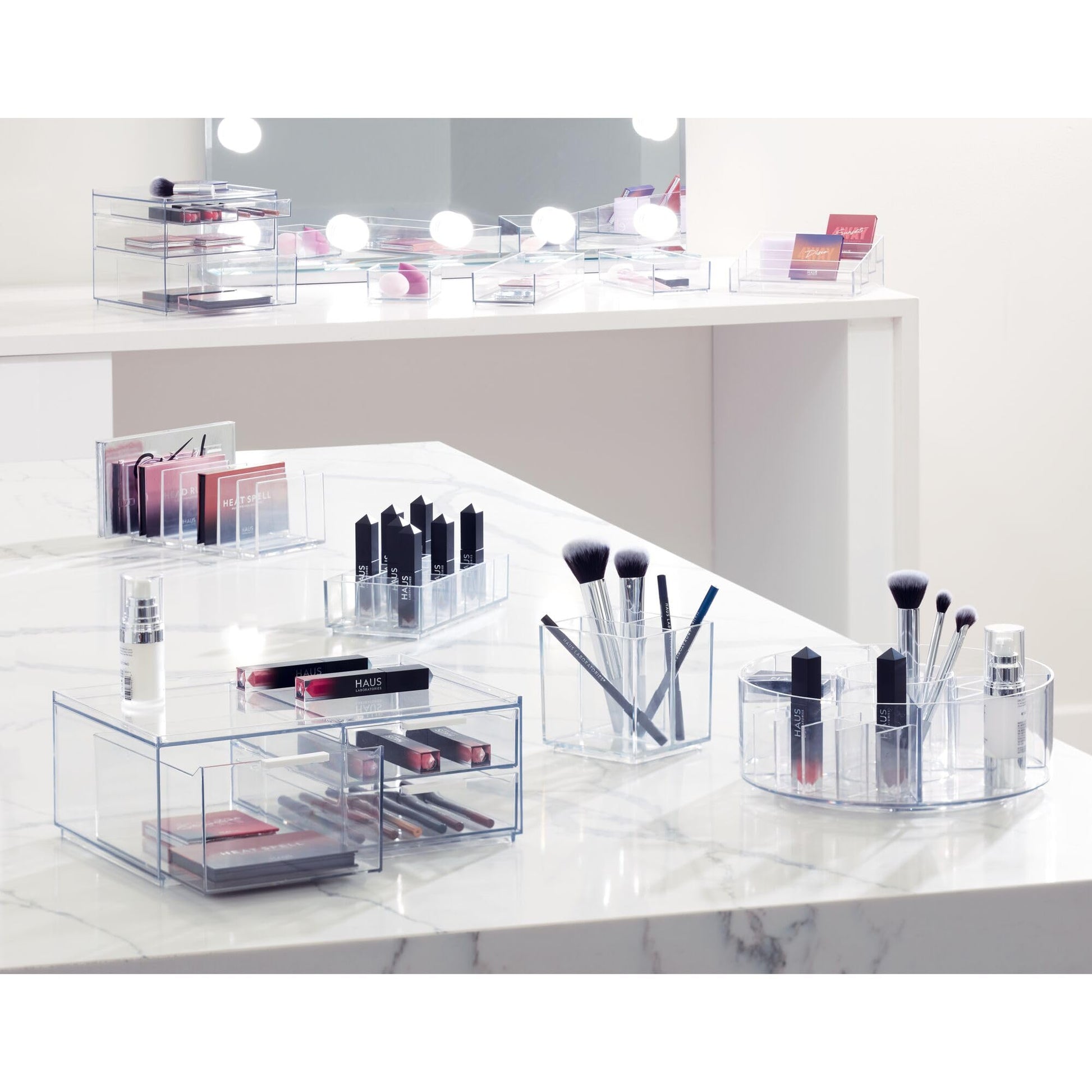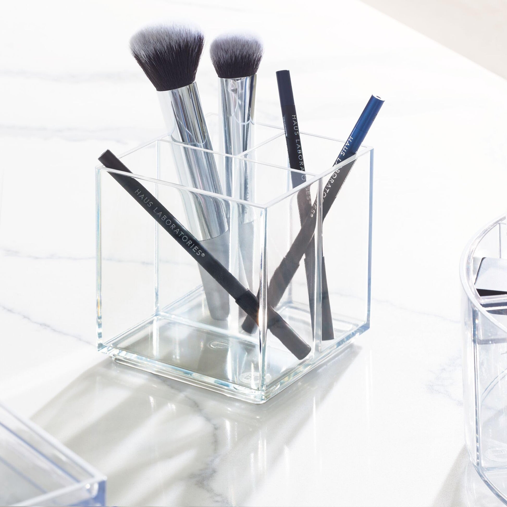 - MADE WITH BPA-FREE PLASTIC: Durable BPA-free PET construction with a sleek clear finish and matte white accents ensure this makeup holder is long-lasting and stylish.