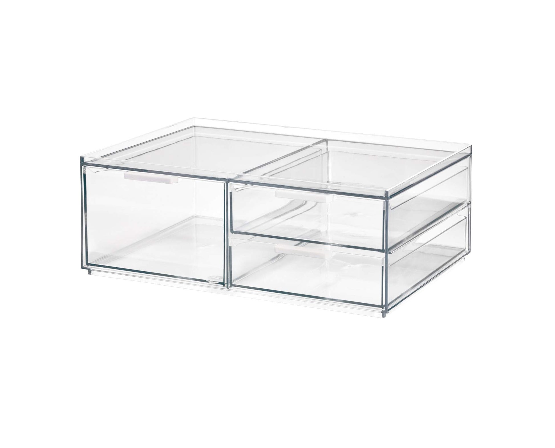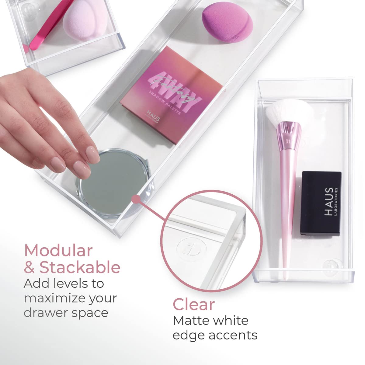 iDesign Storage Drawer from the Signature Series by Sarah Tanno, Rectangular PET Makeup Tray for Beauty Products, Cosmetic Organiser System, Clear/Matte White, 10.2 cm x 20.3 cm x 5 cm