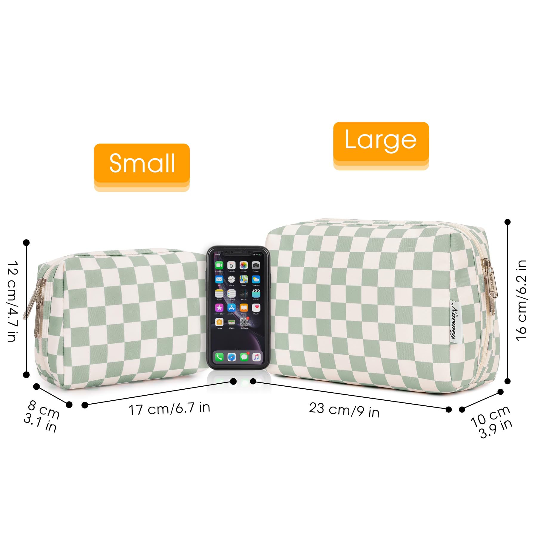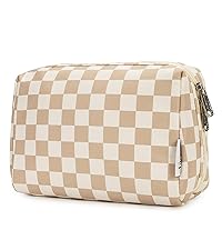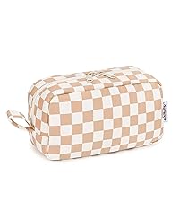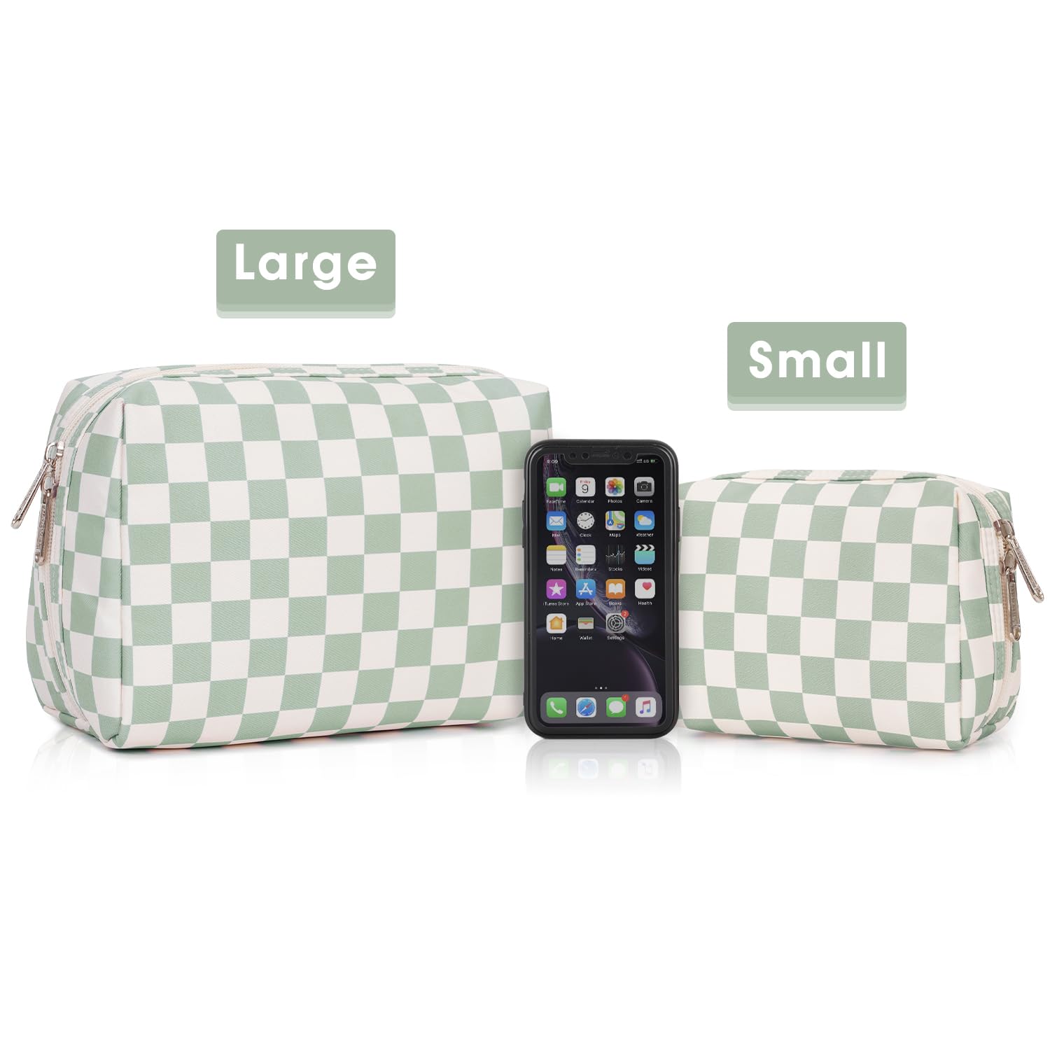 Large Makeup Bag Zipper Pouch Travel Cosmetic Organizer for Women (Mint Green Checkerboard, Large)