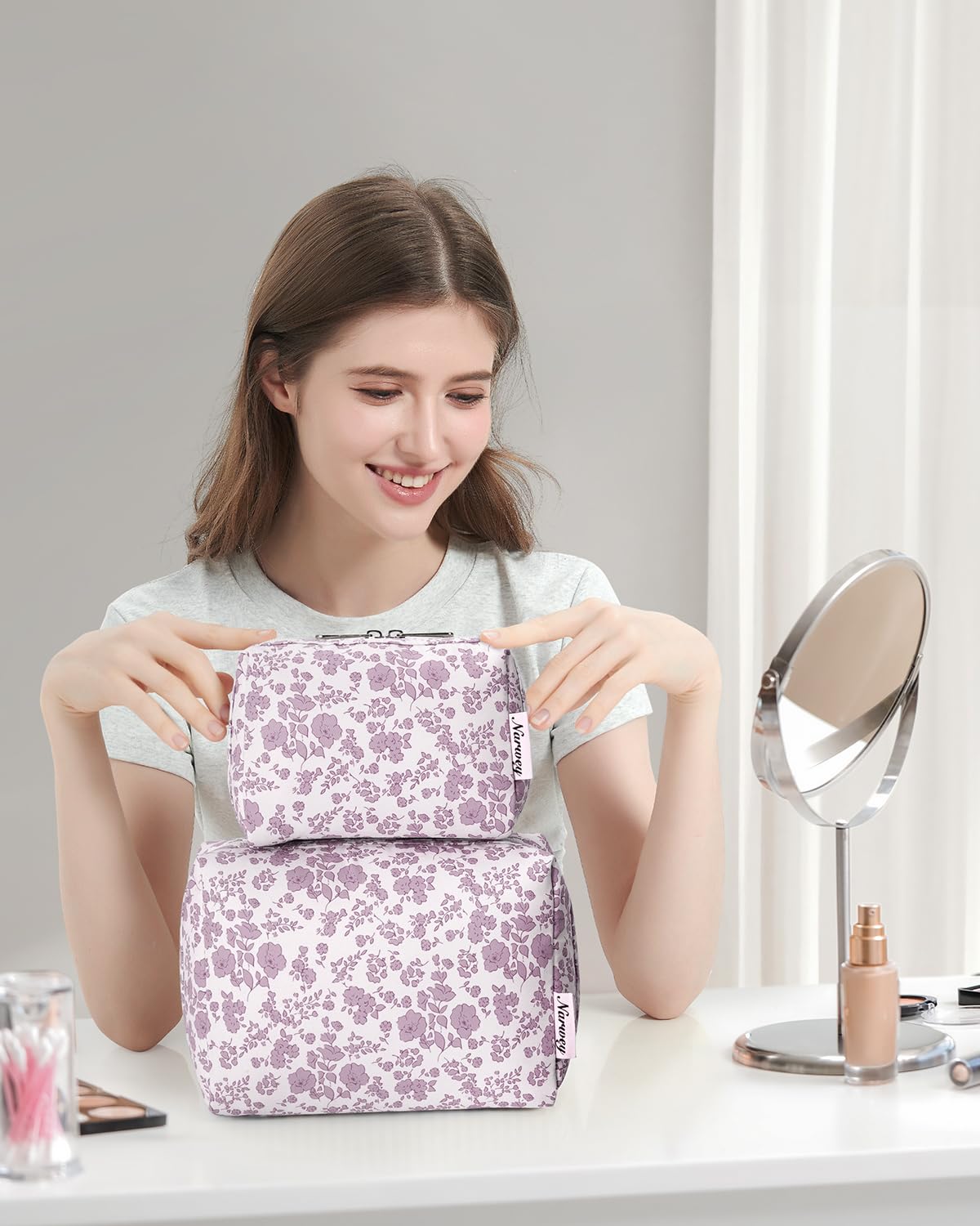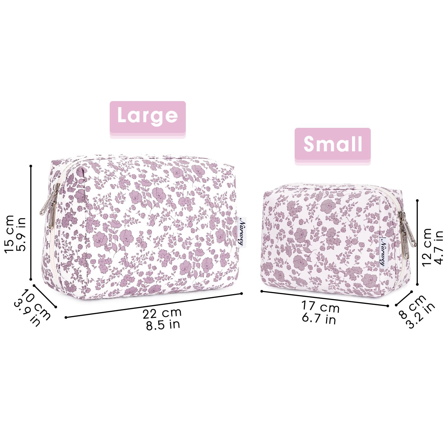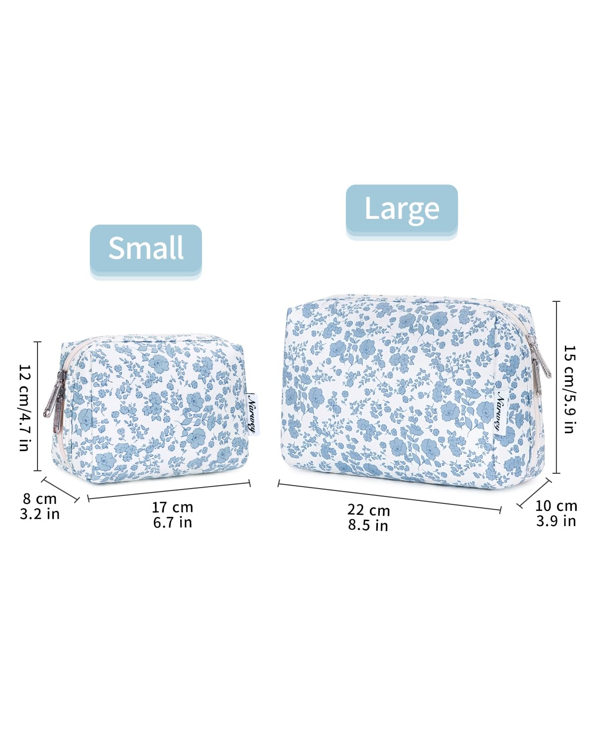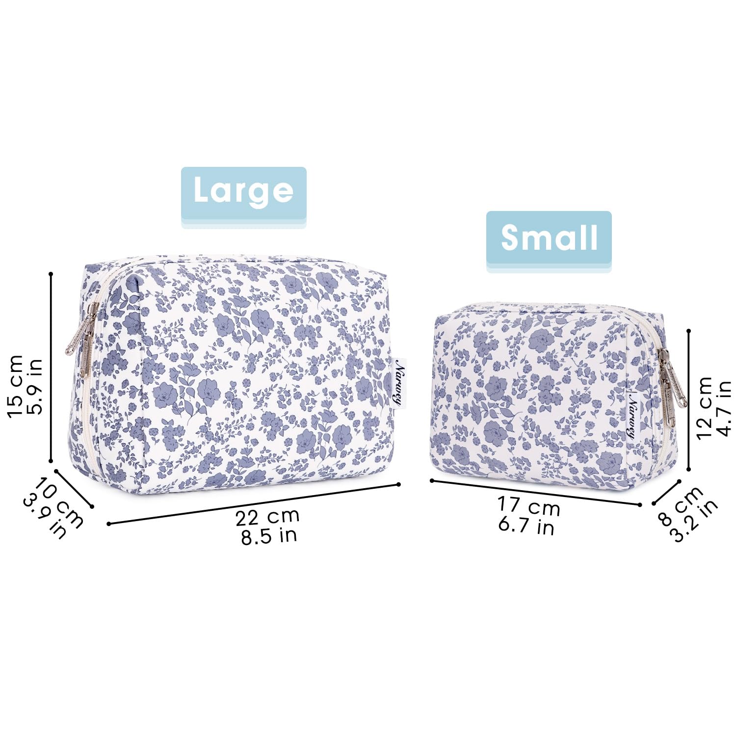 - DECENT SIZE. Please double-check the size before purchasing, especially the smaller option, to ensure it meets your expectations and avoid returns. Dimensions of large version: 8.5"x5.9"x3.9"/22x15x10 cm, weighs only 0.11 kg. Thoughtful size, not too big but not too small, is great for someone who brings a fair amount of makeup/beauty products