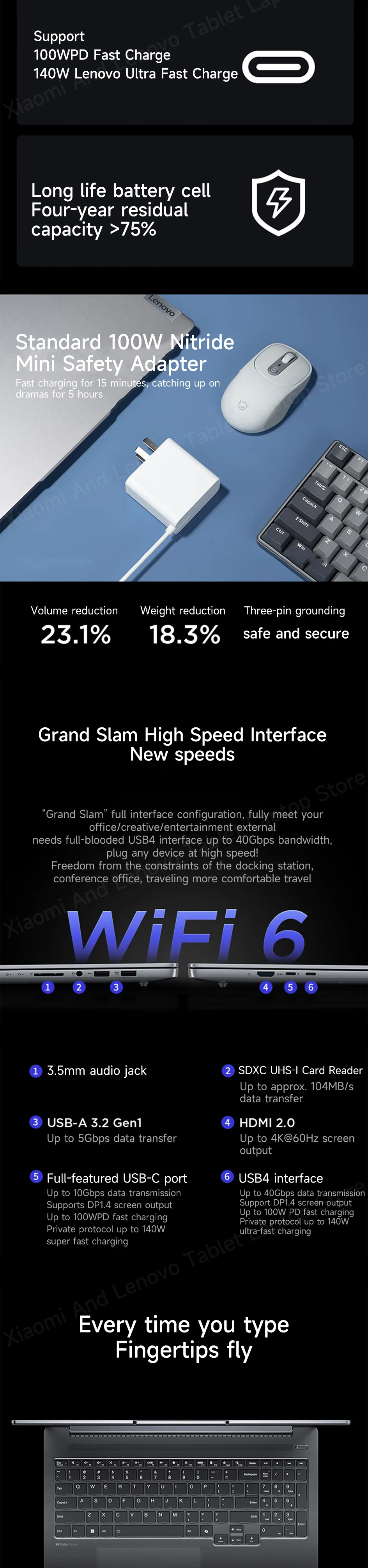 Port: 1×USB 3.2 Type C,Card Reader,3.5 MM Combo Audio Jack,2xUSB 3.0,HDMI-Compatible