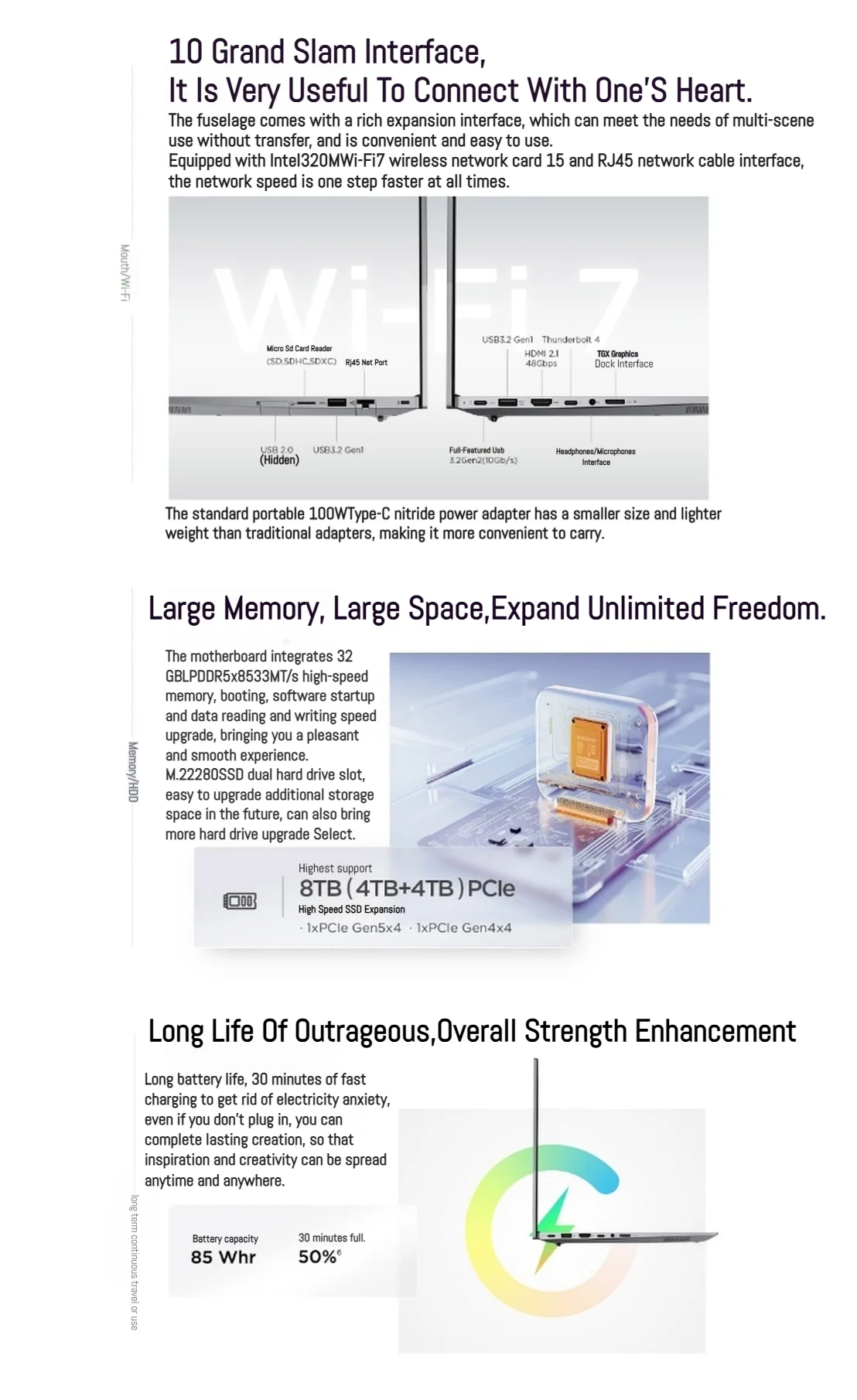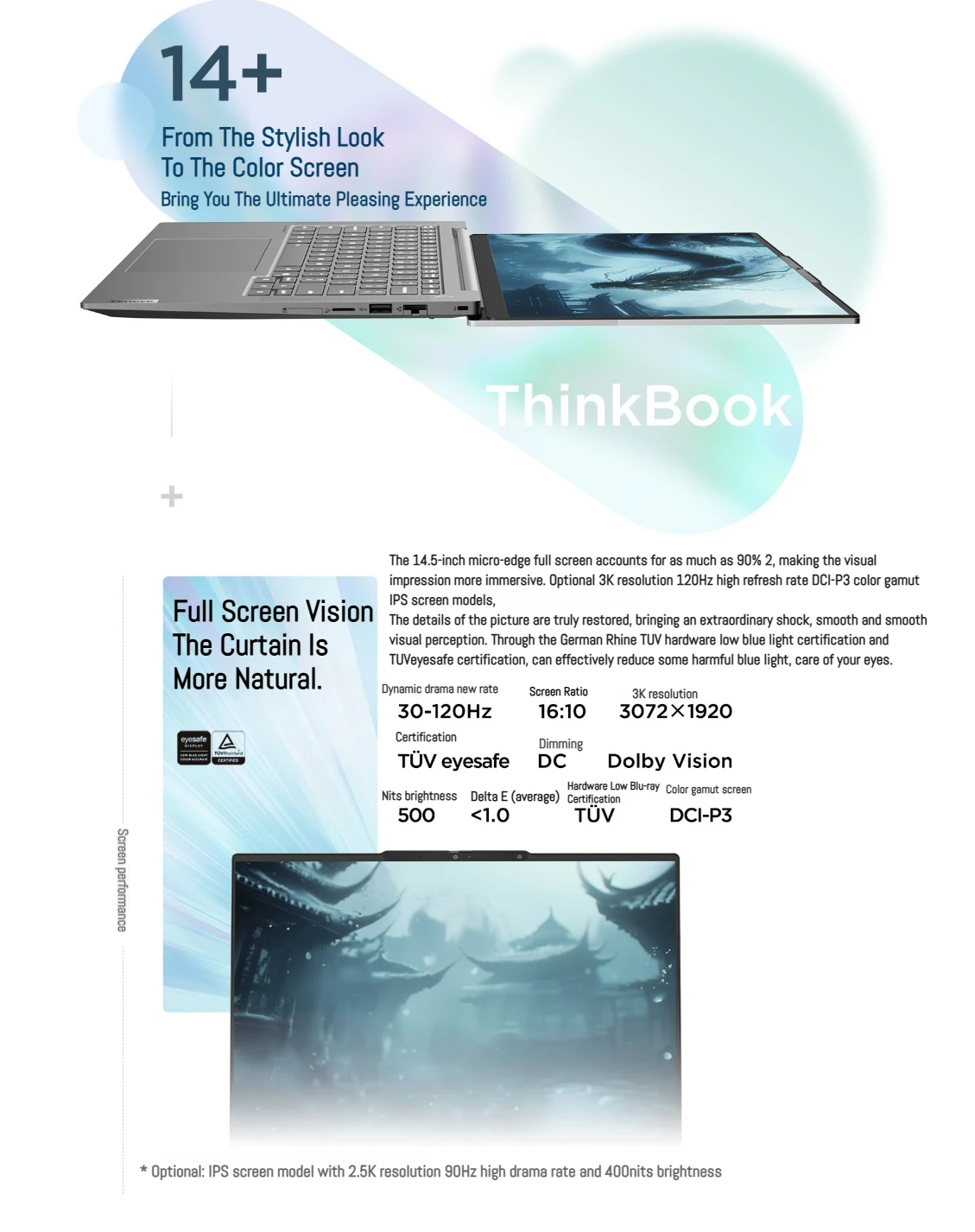The 14.5-inch micro-edge full screen accounts for as much as 90% , making the visual impression more immersive. Optional 3K resolution 120Hz high refresh rate DCl-P3 color gamut IPS screen models