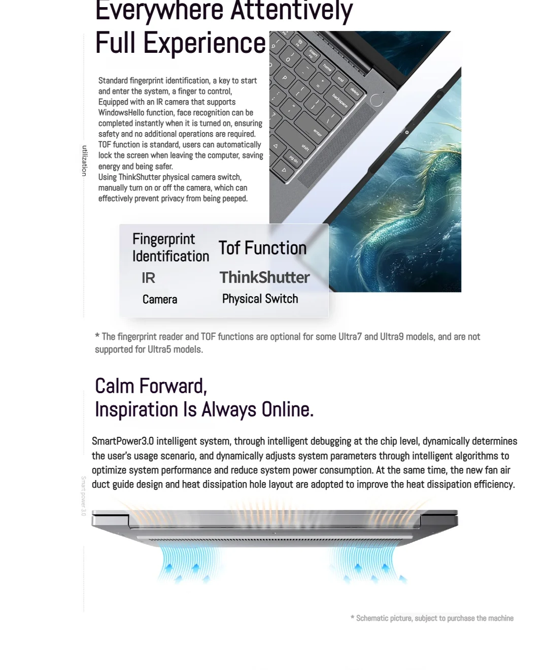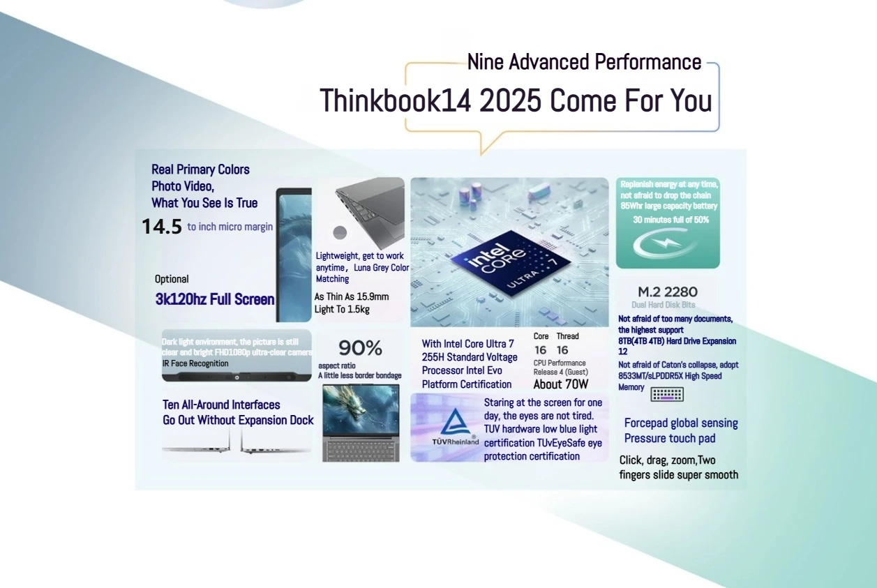 Lenovo ThinkBook 14+ Laptop Ultra 5 225H/Ultra 7 255/Ultra 9 285H/Intel Arc 130T/140T 32GB DDR5 1T SSD 14.5 inches 120Hz Screen