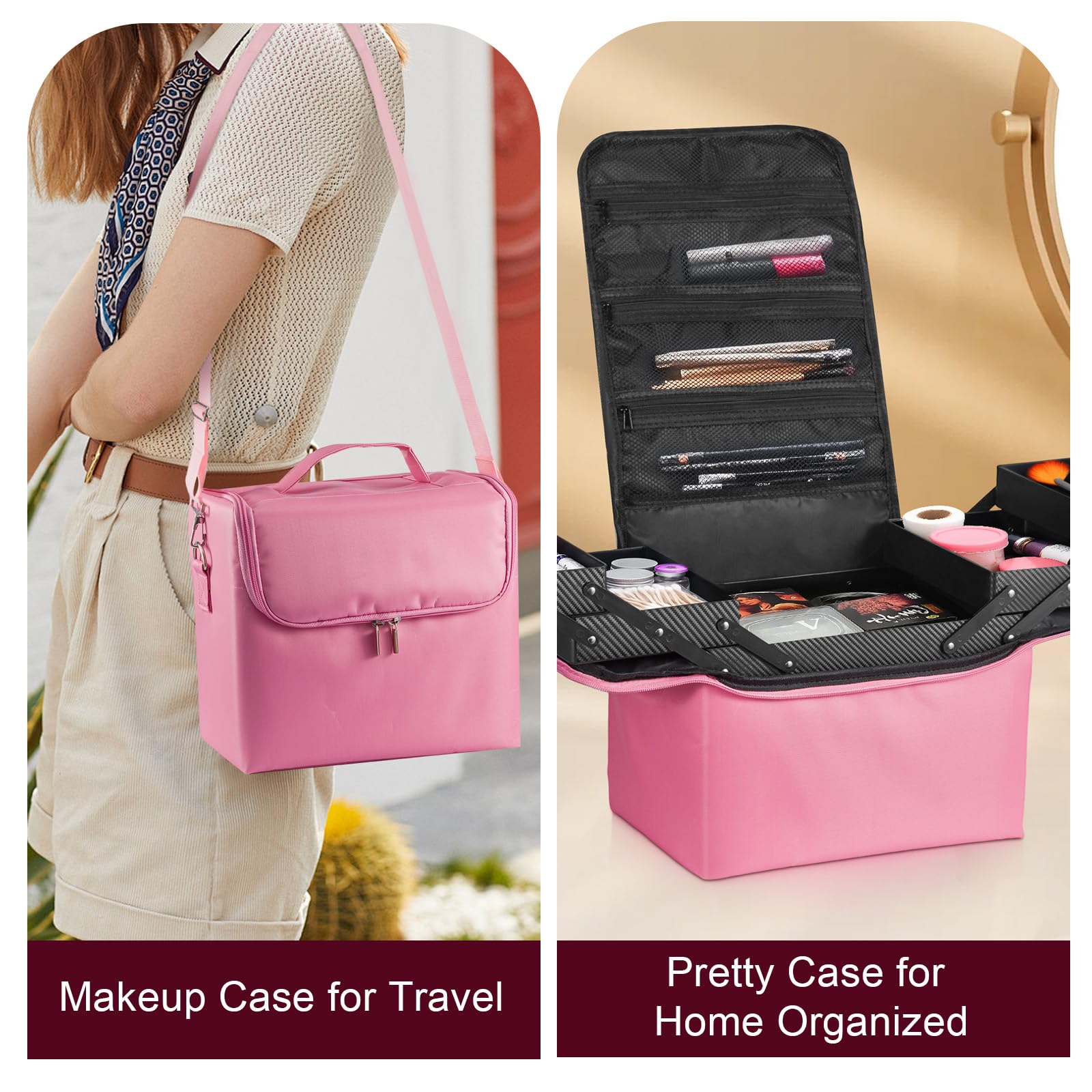 Makeup Case Large Vanity Case – 29x21x27cm Portable Cosmetic Organiser with Shoulder Strap – Professional Make Up Case for Travel & Home, Durable Nylon Storage Beauty Box