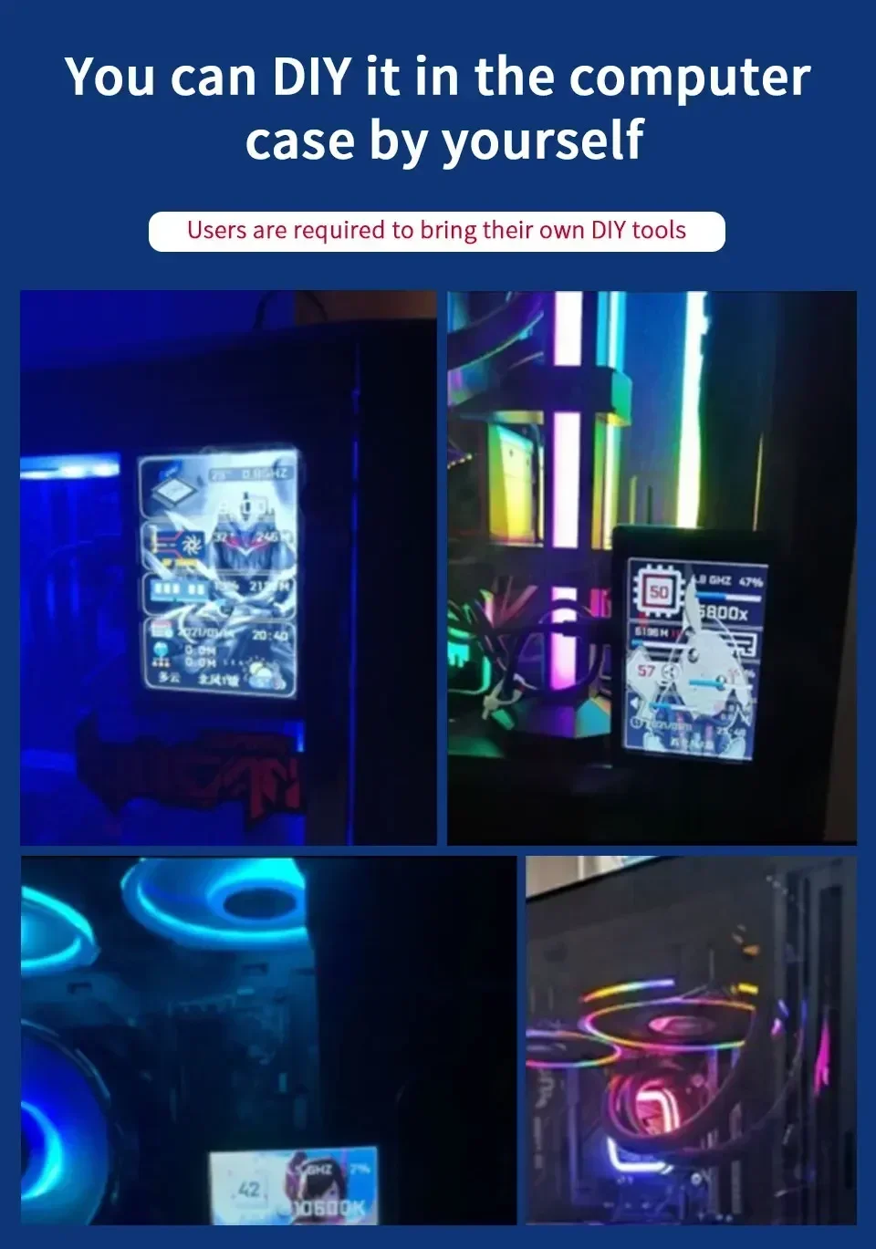 Connect the mini secondary screen to the computer, then start our custom software, no need for aida64, no other complicated settings
