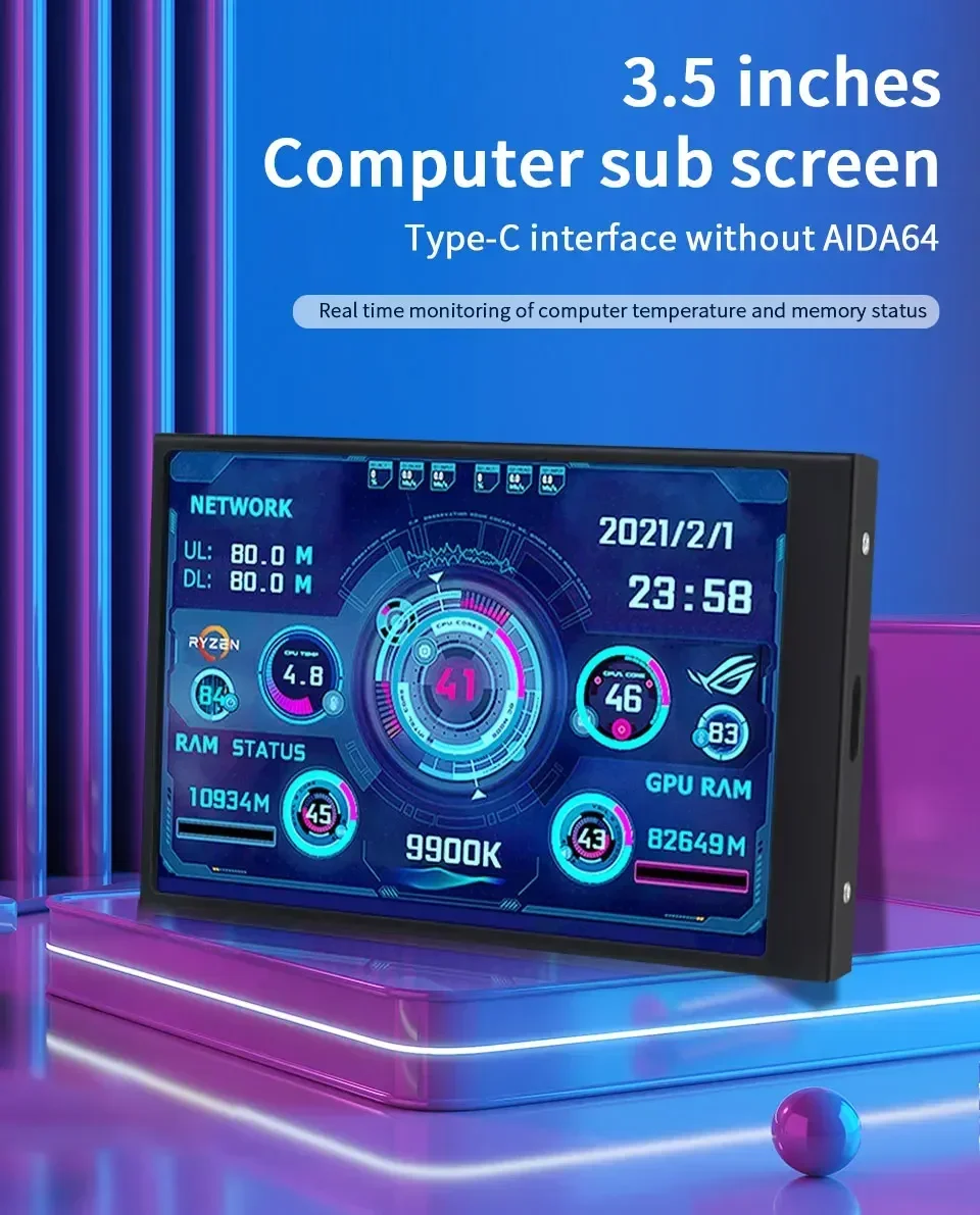 Mini 3.5 inch IPS USB Type C Secondary Screen CPU GPU RAM HDD Computer Monitor Display LCD Monitor Windows 8/10/11 Freely AIDA64