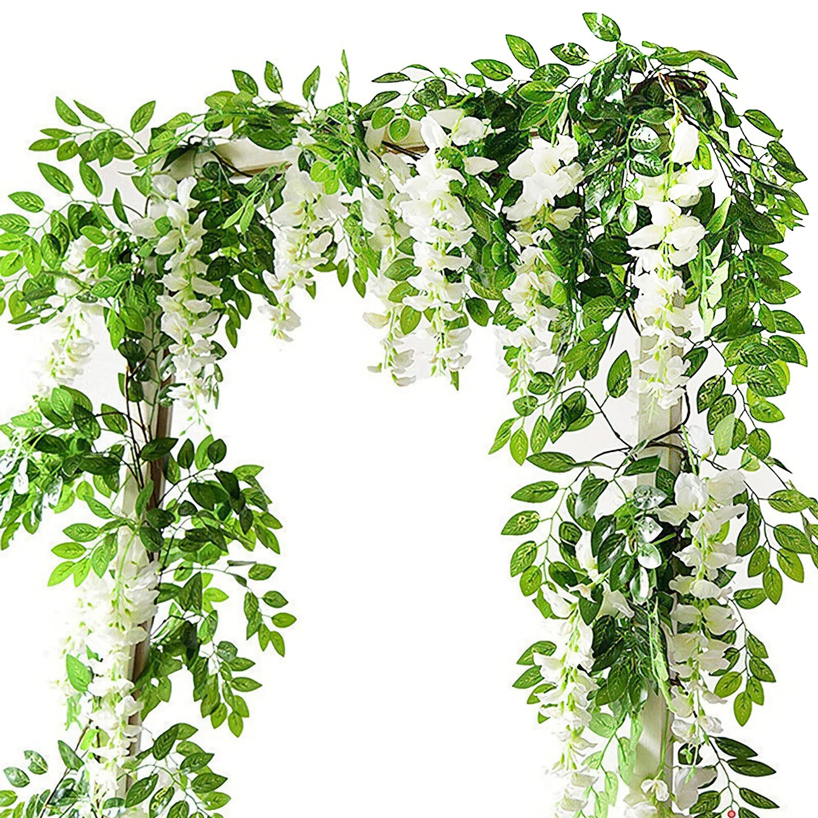 - 8Ft : 2.5M Advantage : The leaves will not wilt, no need to spend a lot time to take care of it, only wash the dust from the leaves and flowers occasionally. The wisteria vines adds a touch of elegance and romance to the place you hang them on. Suitable for wedding party. 4PCS Artificial flower vines are enough for your decoration