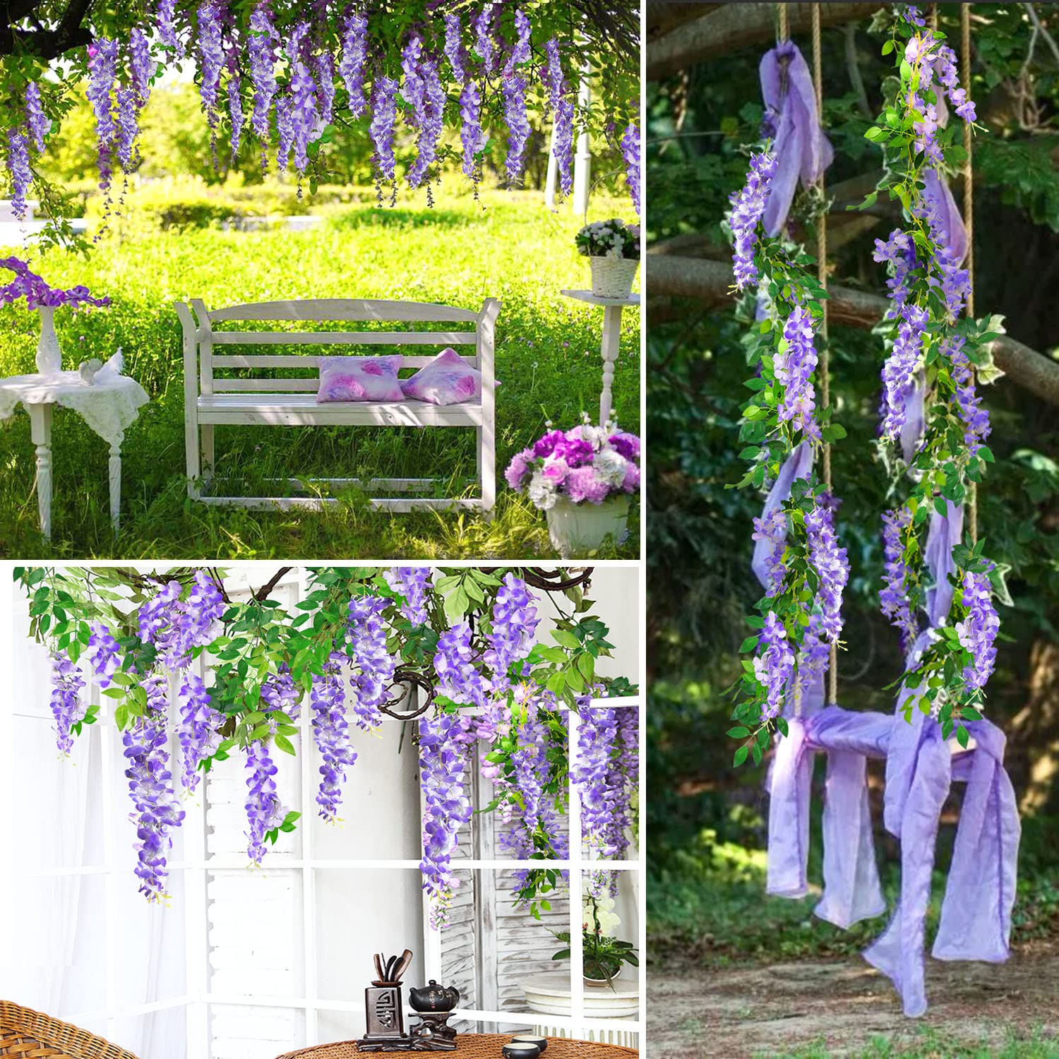 MOTONG Artificial Vine Flowers Decoration, 4Pcs (8FT/2.5M/piece) Artificial Wisteria Vines Garland Plants Flowers Arts For Ceremony Home Garden Wedding Party Decors (4Pcs Purple)