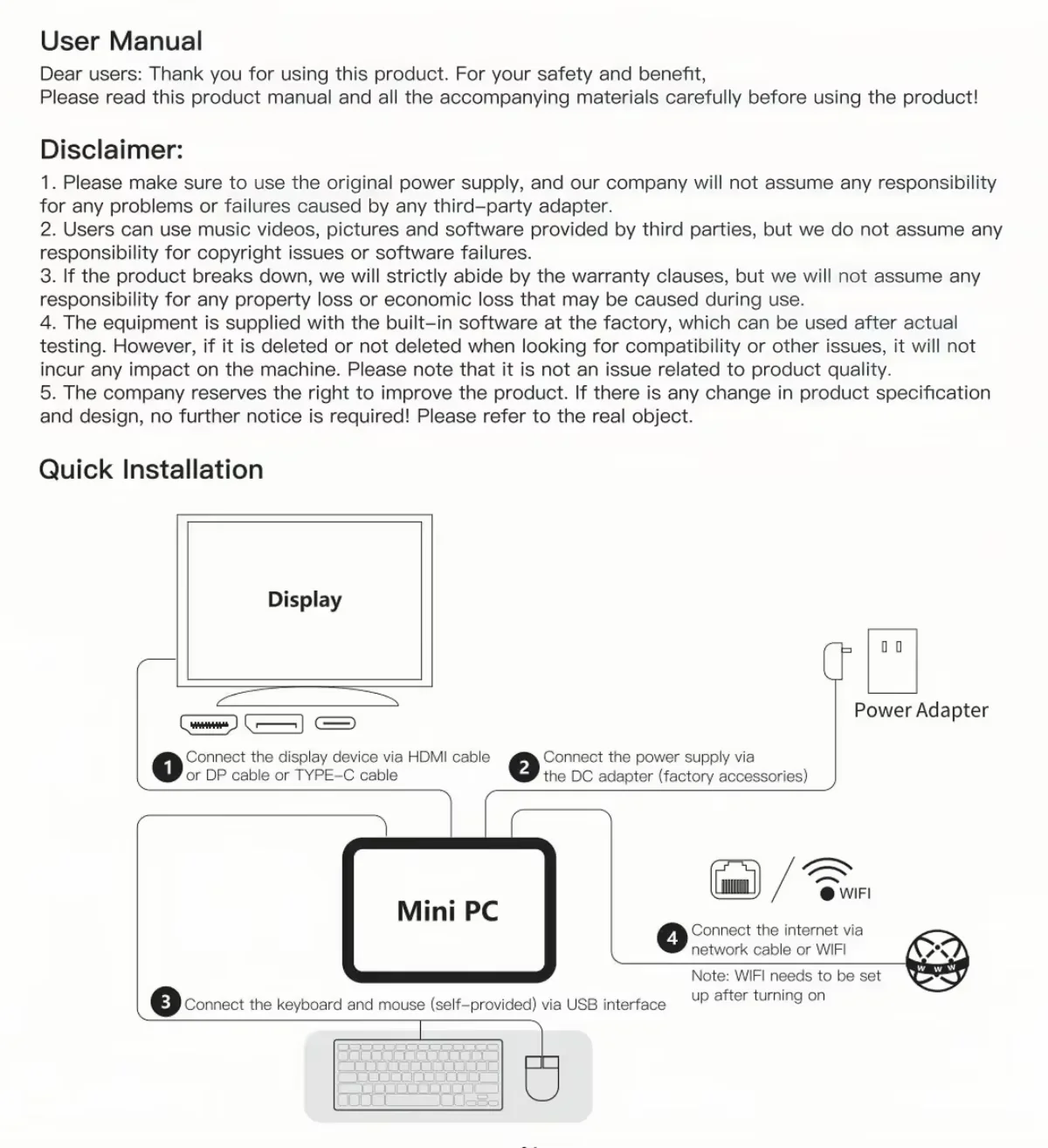 • WiFi 6 and BT5.2 Connectivity :The Mini PC comes with WiFi 6 and BT5.2 connectivity, which allows you to connect to the internet and other devices seamlessly.