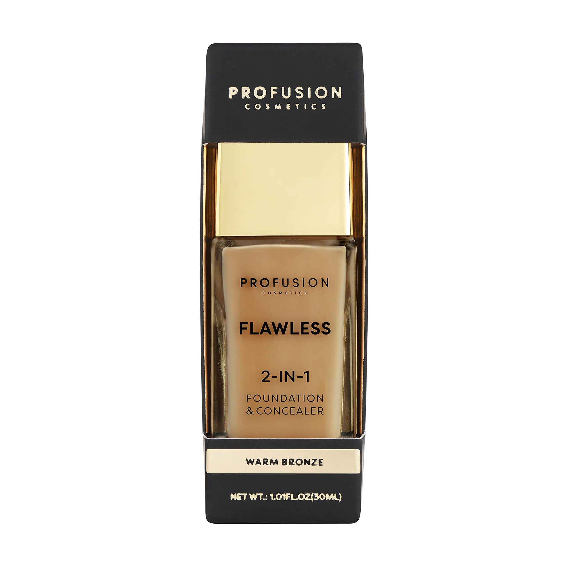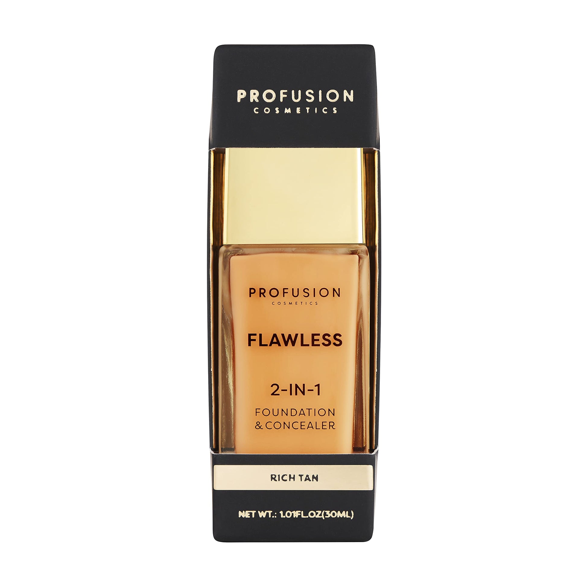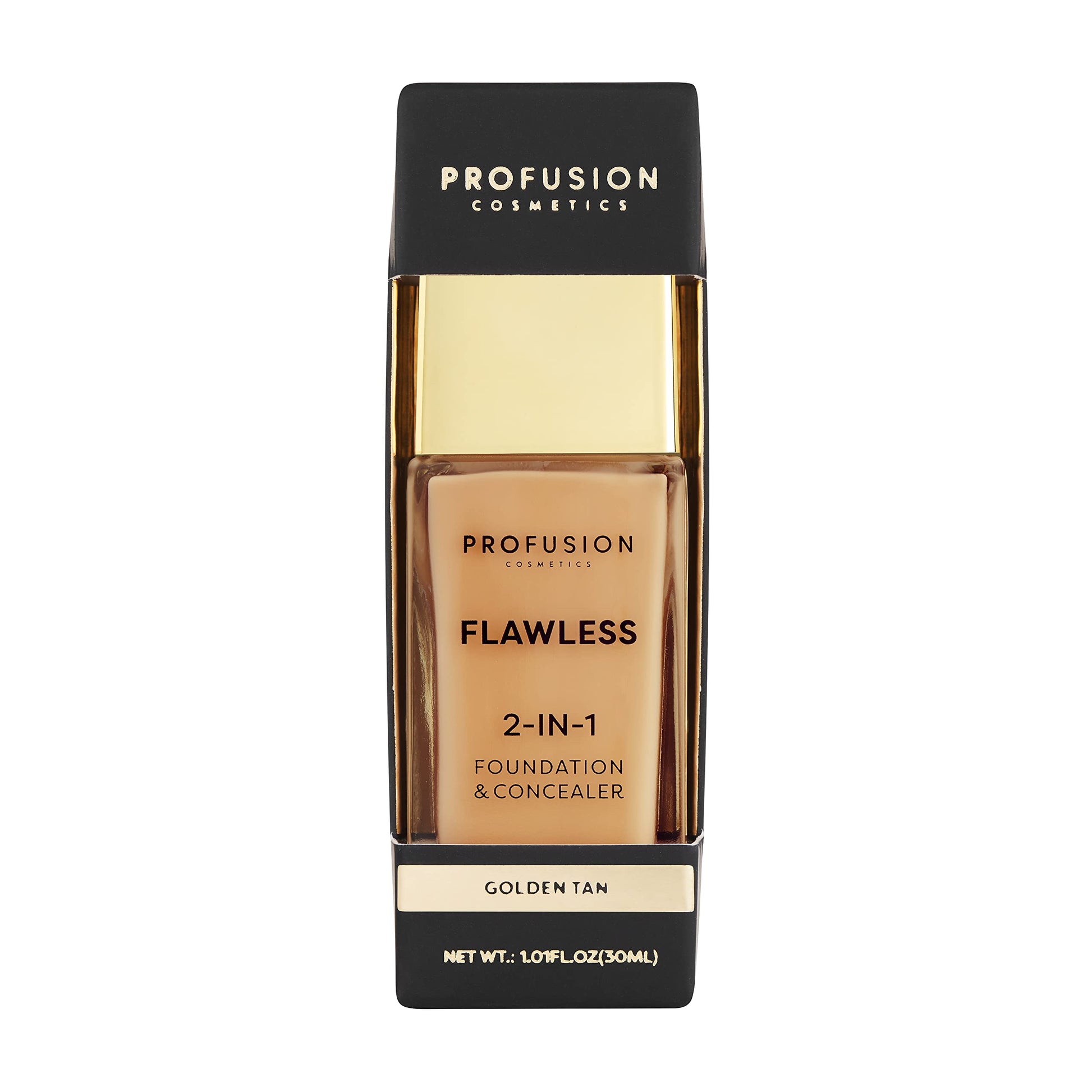Profusion Cosmetics 2-In-1 Foundation and Concealer for Medium Deep Skin Tone, Flawless Full Coverage and Matte Finish with Convenient Solution for Achieving Polished Look - Golden Tan