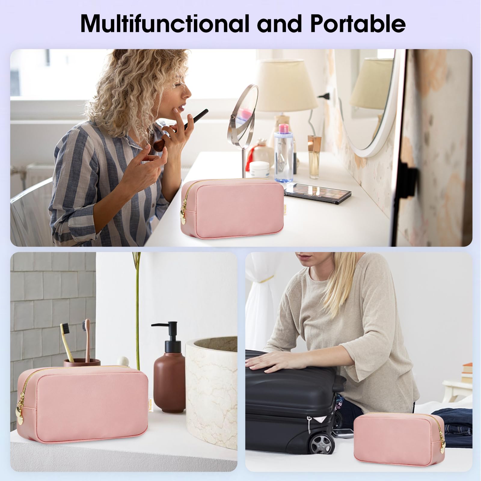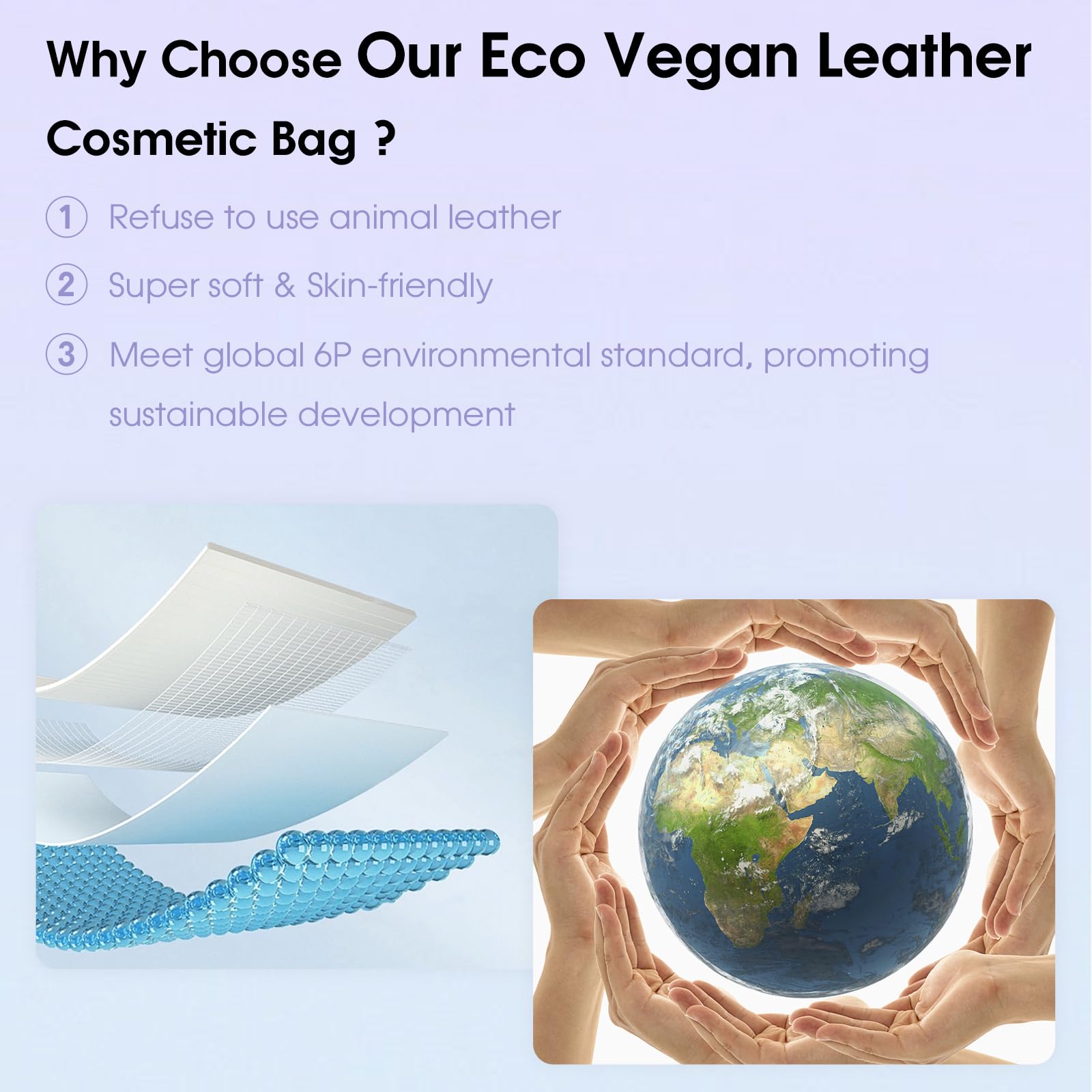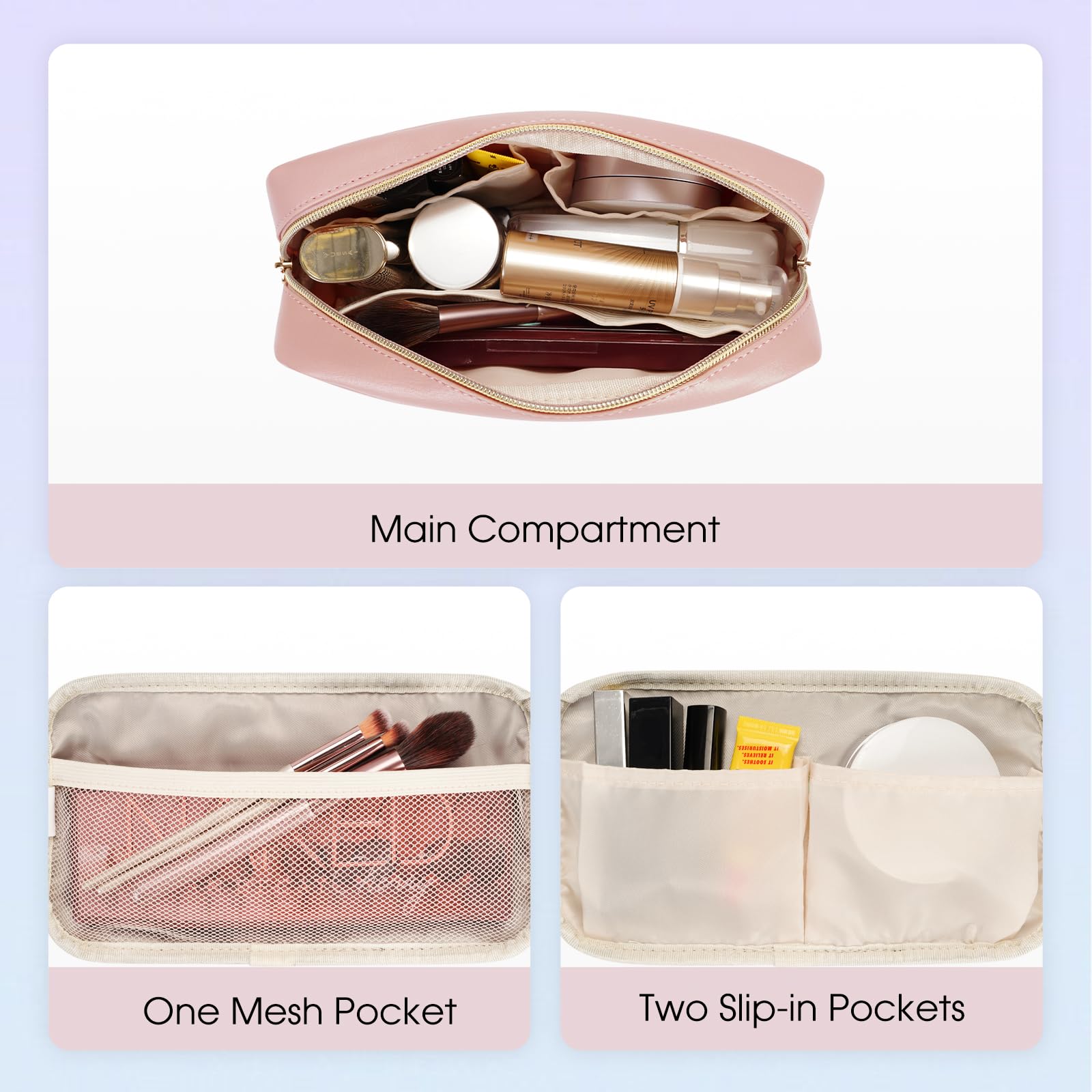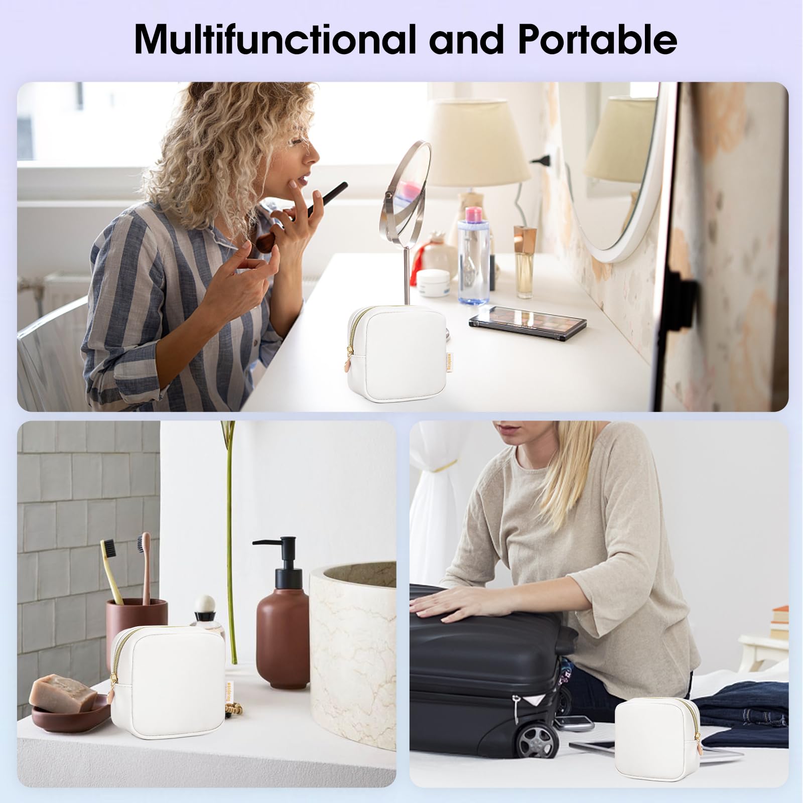- 【Elegant & Stylish Design】Made from water-resistant vegan leather with a sleek gold zipper, this small makeup bag is both elegant and practical. It protects your cosmetics from water damage and adds a chic touch.