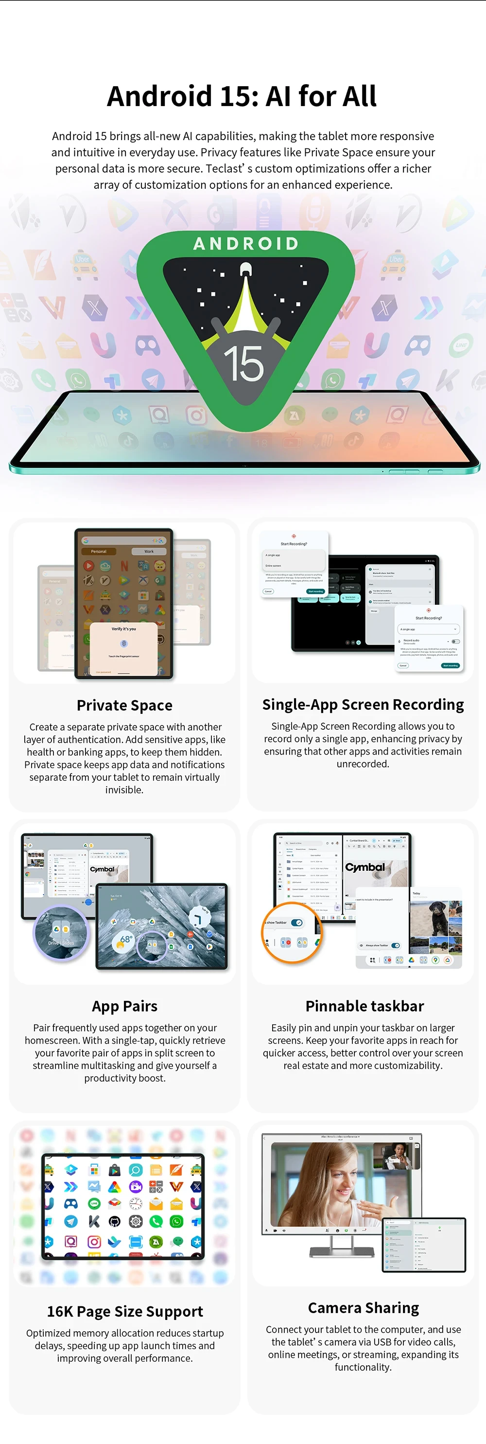 Teclast P50 AI Android 15 AllWinner A733-AI Table 11" 90Hz Screen Octa-Core 6GB 128GB LPDDR5 WIFI-6 7000mAh Battery AI Tab
