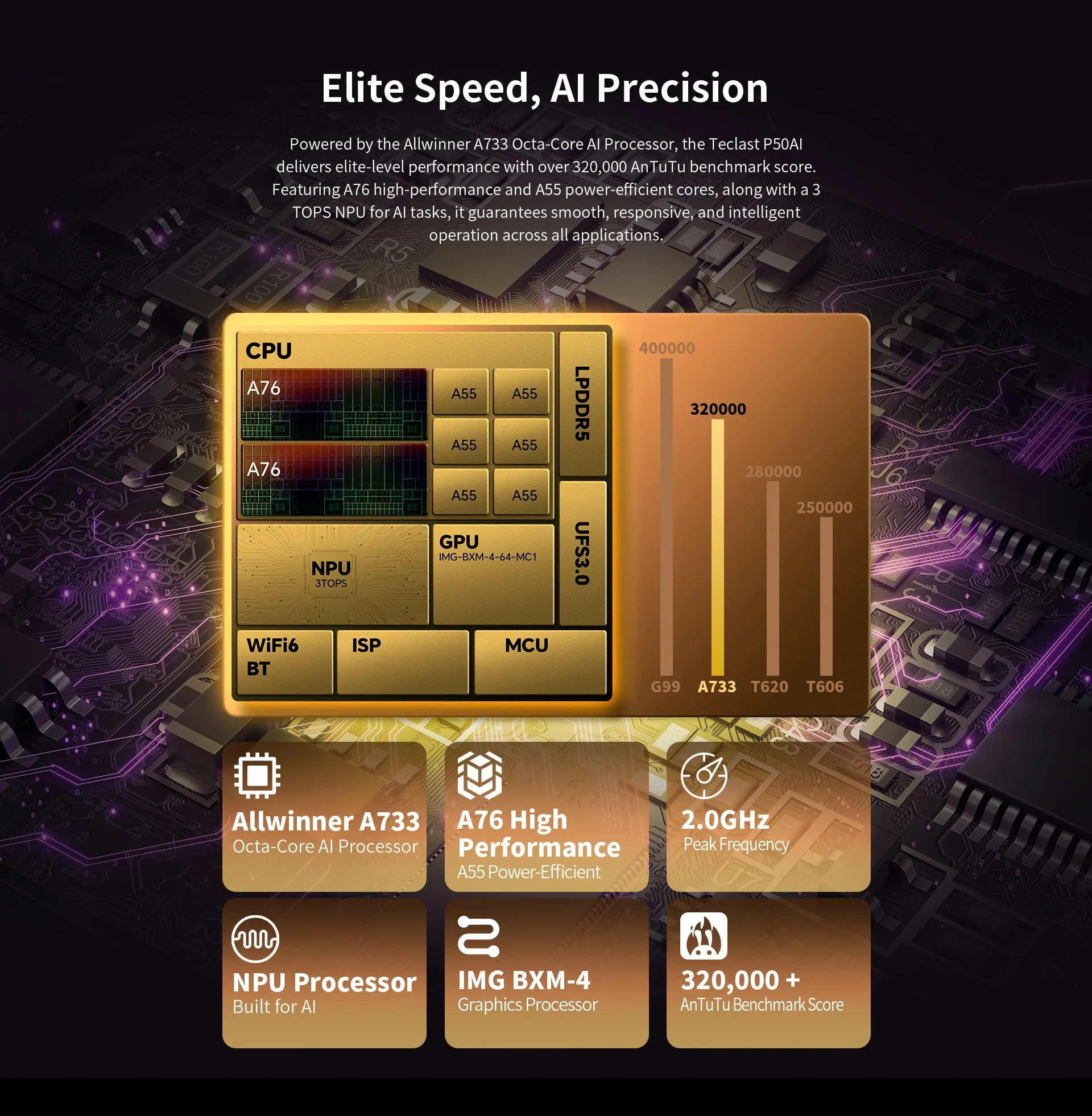 is powered by an advanced octa-core processor, ensuring swift and smooth operation. This means that whether you are multitasking between apps or playing resource-intensive games, the tablet handles everything efficiently. The combination of 6GB LPDDR5 RAM and the AllWinner A733-AI chip allows for a seamless experience, minimizing lag, and providing instant responsiveness. So, you can enjoy your activities without interruptions.
